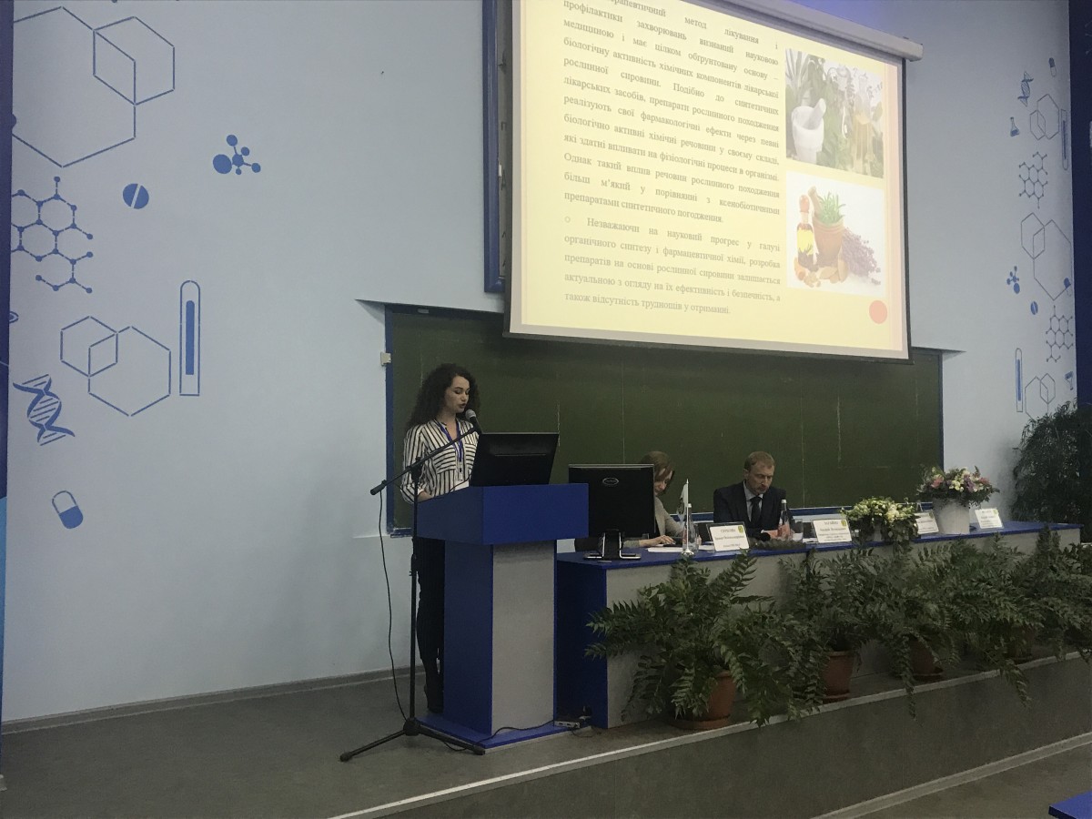 Оксана Щур представила результати своєї роботи «Фармакогностичне дослідження трави і кореневих бульб смикавця їстівного (чуфи)», над якими працює протягом двох років. Вона є членом наукового студентського наукового гуртка кафедри фармакогнозії з медичною ботанікою.