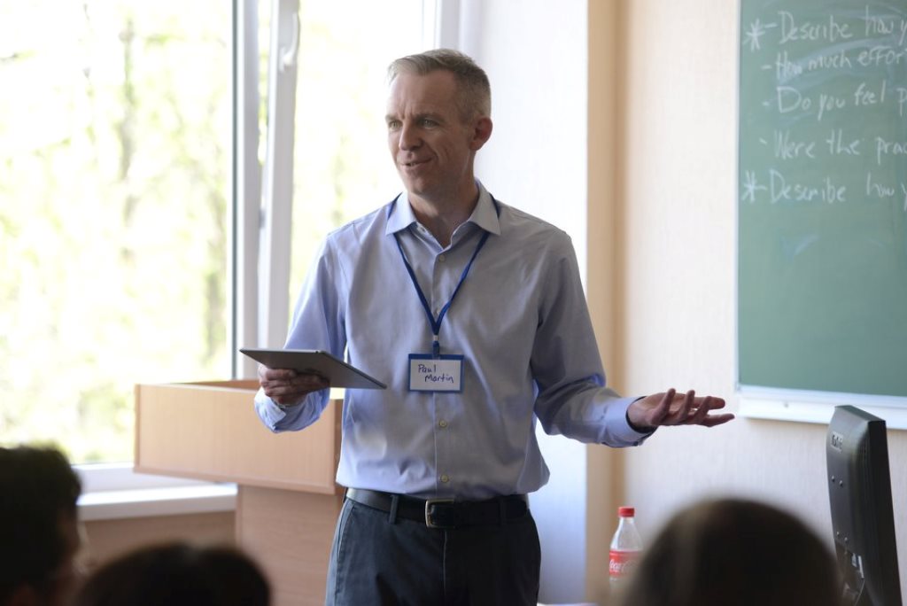 Поль Мартін проводить тренінг на тему «Використання сучасних он-лайн платформ для стимуляції навчання студентів».