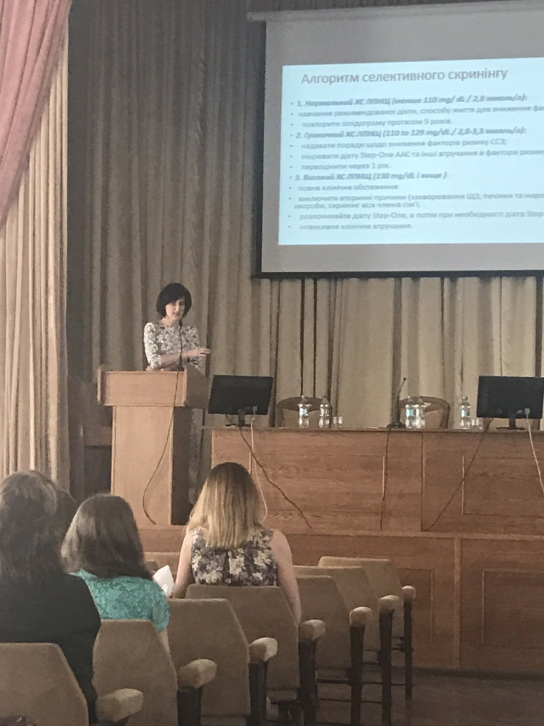 Завідувач кафедри дитячих хвороб з дитячою хірургією ТДМУ, професор Оксана Боярчук у своїй доповіді розповіла присутнім про причини, клініку, класифікацію гіперліпідемій, діагностичні критерії гетерозиготної сімейної гіперхолестеринемії, надала рекомендації щодо діагностики і лікування цієї патології.