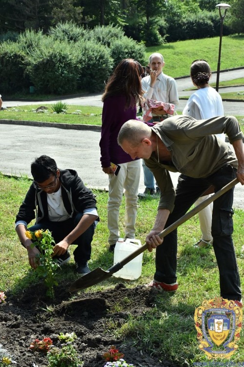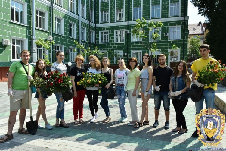 Ранок цього дня розпочався з того, що у внутрішньому дворику ТДМУ було висаджено 20 кущів троянд з наміром зробити цей світ красивішим. Як зазначила голова Тернопільського центру духовного розвитку Марія Гуска, люди, які практикують йогу, є активними у житті. На підтвердження цього представники організації купили 50 кущів троянд і спільно зі студентами постаралися прикрасити цей світ. Іншу половину квітів було посаджено у парку Національного відродження.