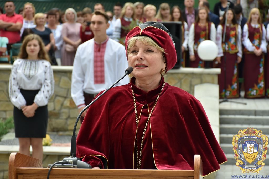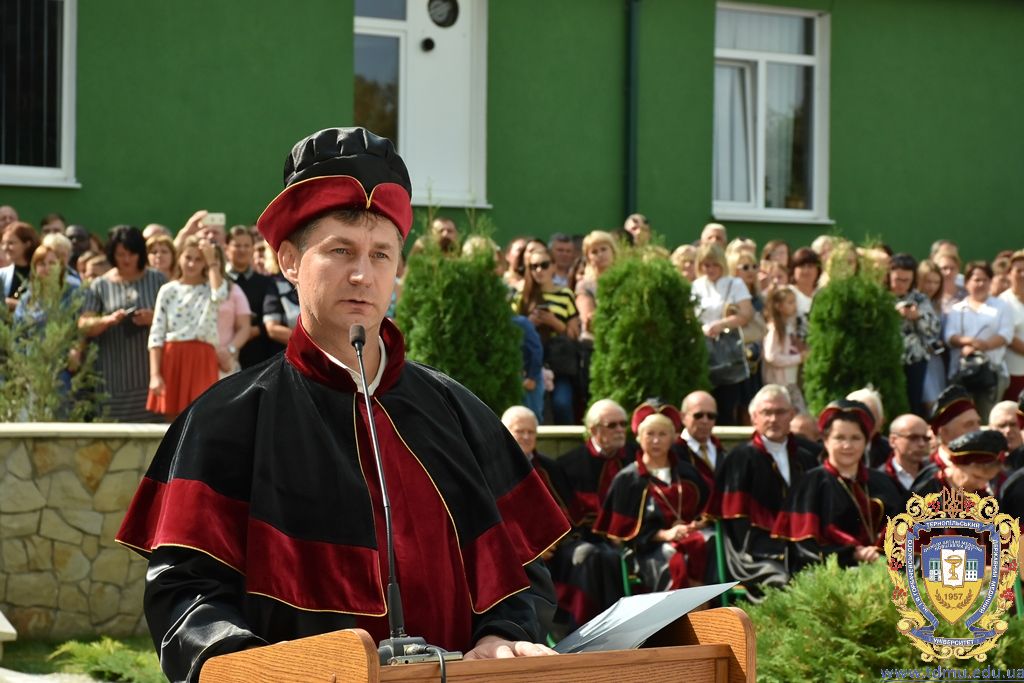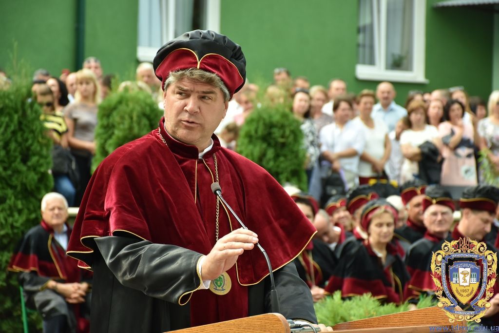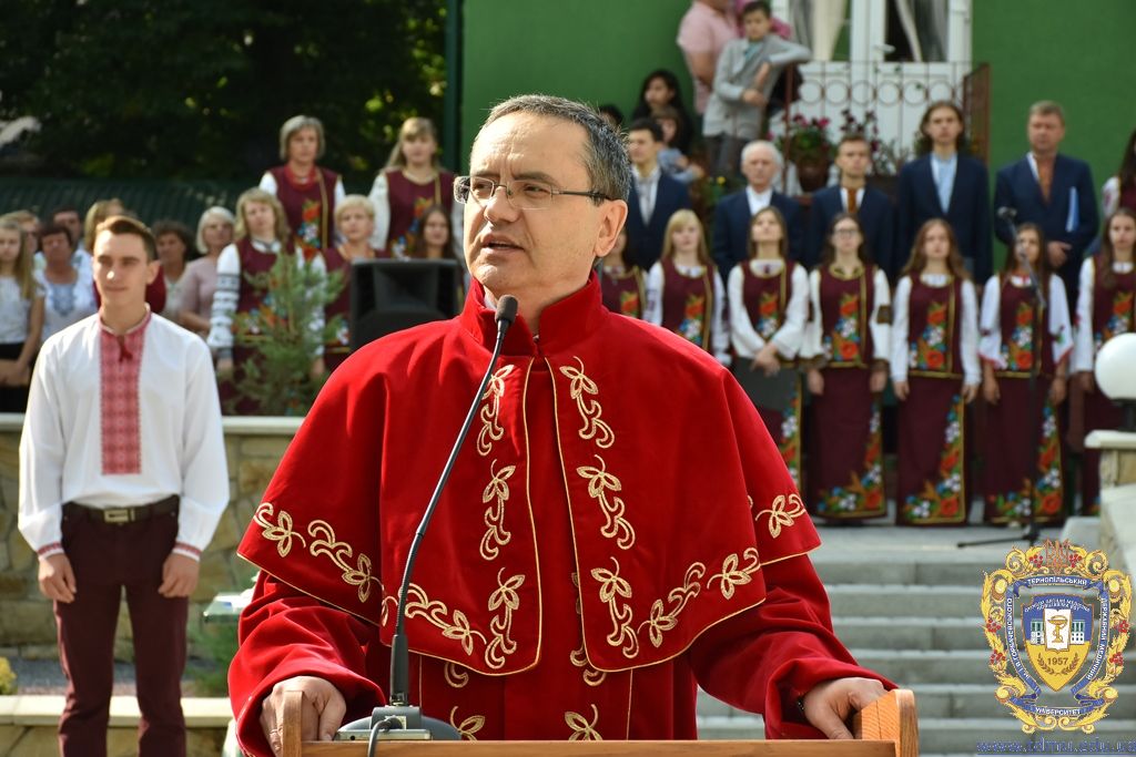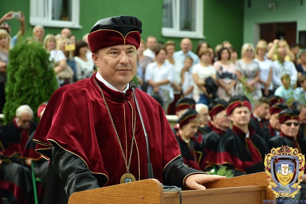 «Ви успішно склали всі необхідні іспити і випробування. Сьогодні ви приєднуєтеся до когорти студентів Тернопільського державного медичного університету, ви стаєте членами великої університетської родини, яка налічує понад 6000 студентів. Цього року до університету вступило 1050 нових студентів. Це один з кращих показників у медичних вишах України. Ви прийшли на навчання, щоб отримати омріяний фах лікаря, стоматолога, провізора, медичної сестри, парамедика, фізичного терапевта. Відразу хочу попередити, що буде нелегко, оскільки будете вивчати медицину – науку, яка пов’язана зі здоров’ям людини і її життям, а тому прогалин і білих плям у ваших знаннях бути не може. Будь-які помилки можуть коштувати дуже дорого. Їх ціна – життя людини.