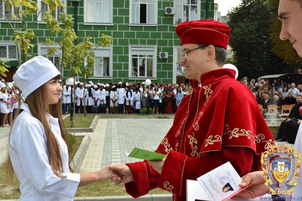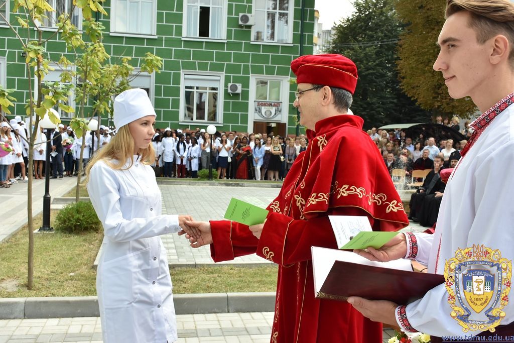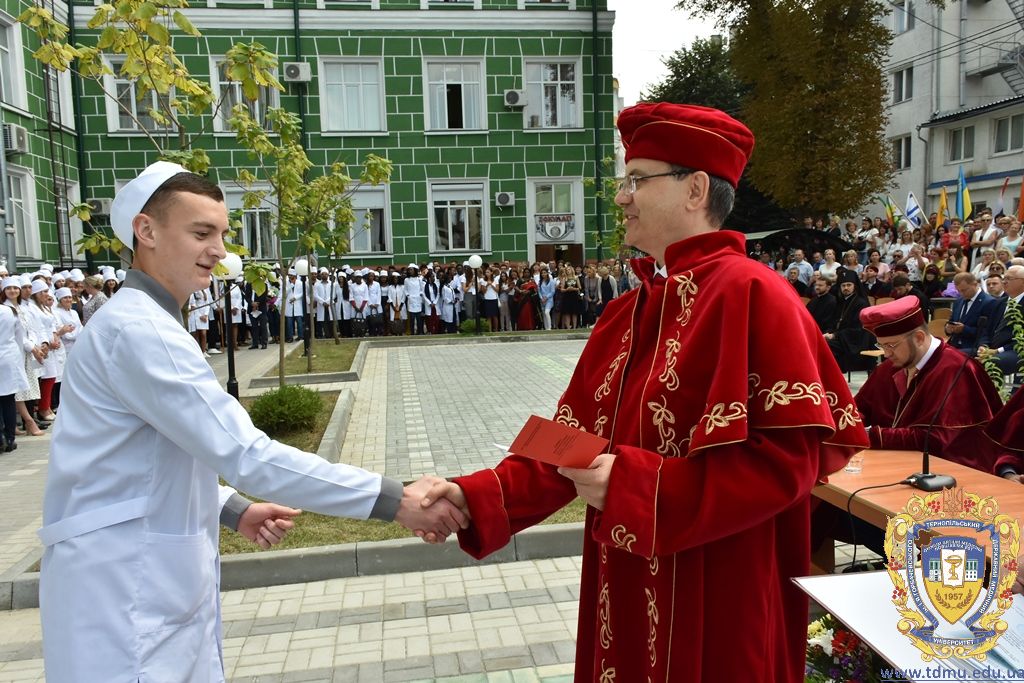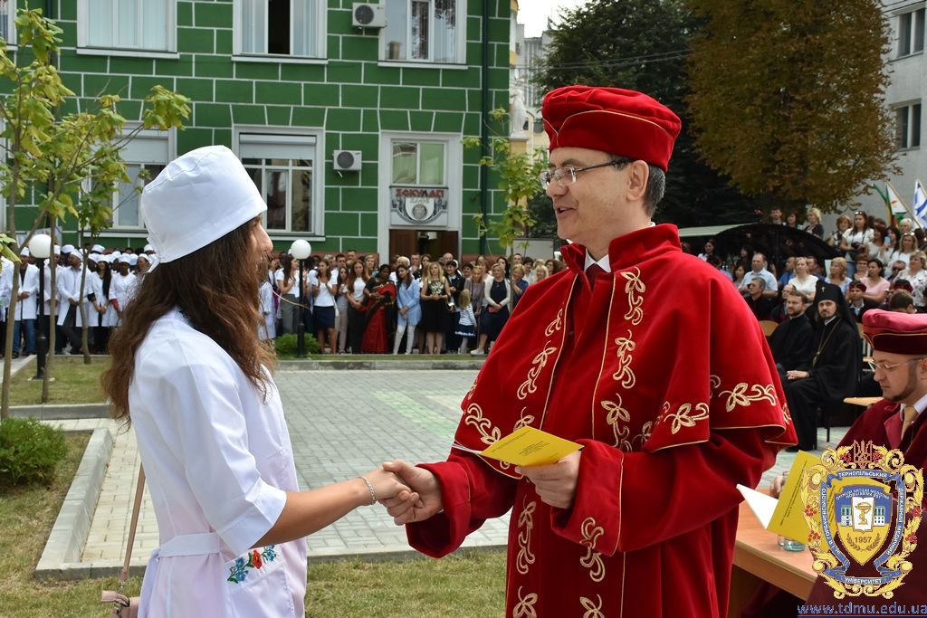 Студентську родину поповнило 1050 першокурсників, які склали урочисту обіцянку присвятити своє життя благородній справі – боротьбі за здоров’я людини, берегти та примножувати кращі традиції ТДМУ, бути гідними почесного звання студента-медика. З цієї дати для кожного з них розпочався відлік днів, місяців, років для здійснення мрії – стати кваліфікованим лікарем, стоматологом, провізором, медичною сестрою, парамедиком, фізичним реабілітологом, досягти успіху на професійній ниві і стати багатогранною особистістю.