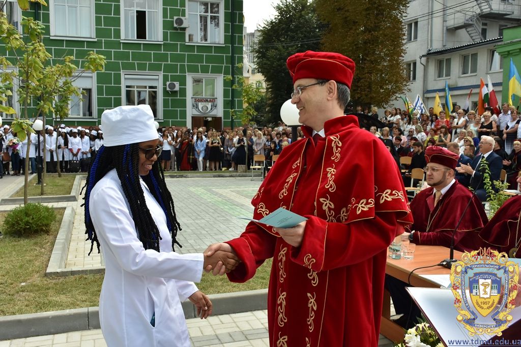 Проректор з науково-педагогічної роботи, професор Аркадій Шульгай під час урочистостей наголосив на тому, що ТДМУ активно веде міжнародну діяльність з багатьма навчальними закладами світу. Укладено 73 міжнародні угоди про співпрацю та обмін студентами. Аркадій Гаврилович представив гостей університету – канцлера Вищої школи медичної в Бялистоку Міколая Томулєвіча та декана цього навчального закладу Агнєшку Закжеску, а також професора Андрія Шпакова.