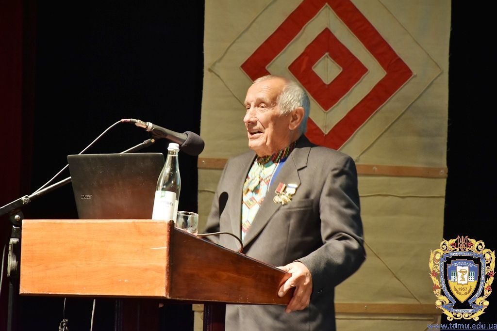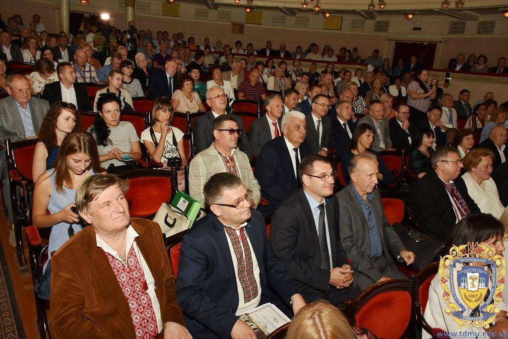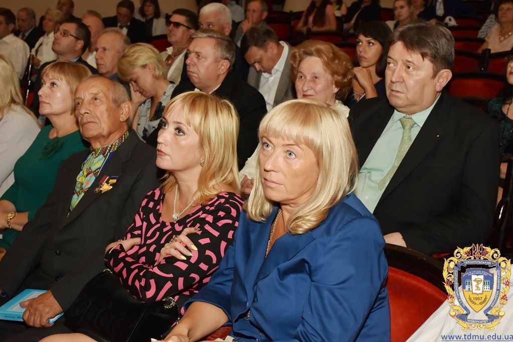 «Передаю вітання від імені українців Москви, які об’єднані в товаристві «Славутич». Українська діаспора в Росії дуже велика – мільйони людей, серед яких багато лікарів. Для мене сьогодні подвійне свято, бо я приїхав додому. В цьому театрі в 1961 році мені вручили диплом лікаря. Хочу сказати, що мій університет один з кращих у світі. Сьогодні варто згадати першого ректора тоді ще Тернопільського медичного інституту – Петра Омеляновича Огія. До речі, я написав книгу про героїв України, які постійно боролися за її незалежність. У ній я згадав і першого ректора Тернопільського медичного університету, який також зробив свій внесок у це», – розповів голова Лікарського товариства в РФ Василь Антонів.
