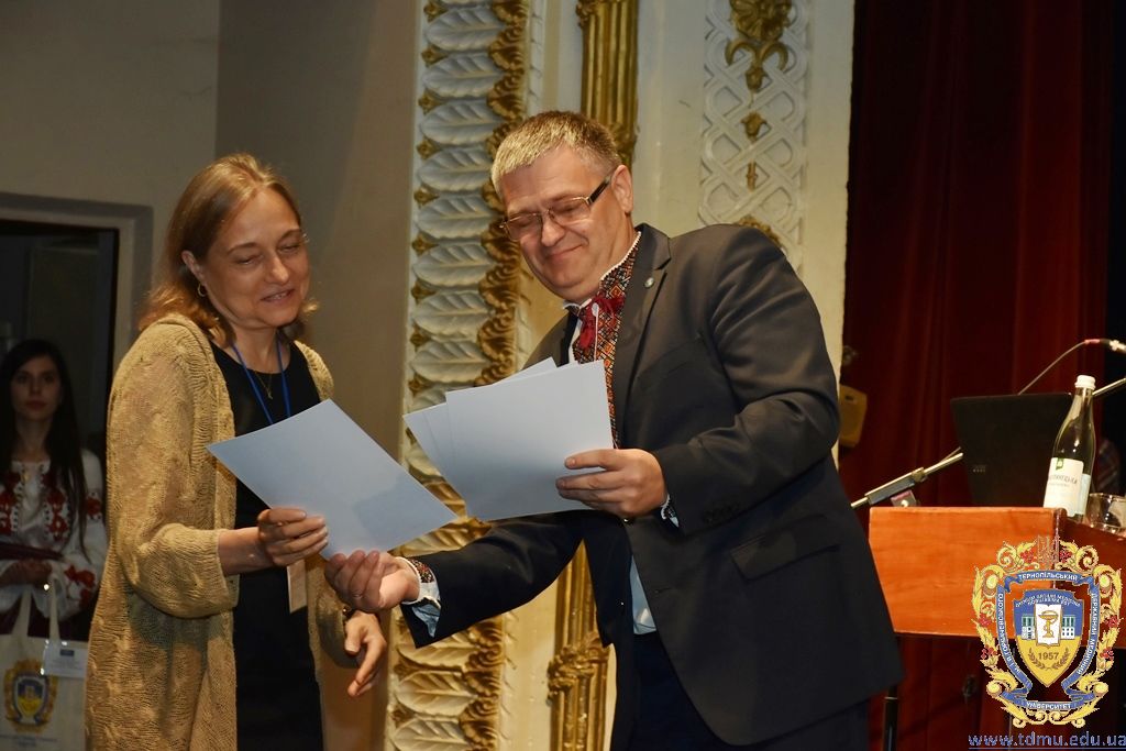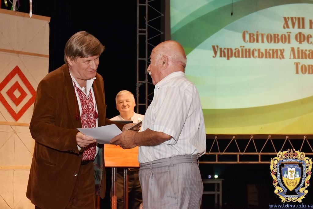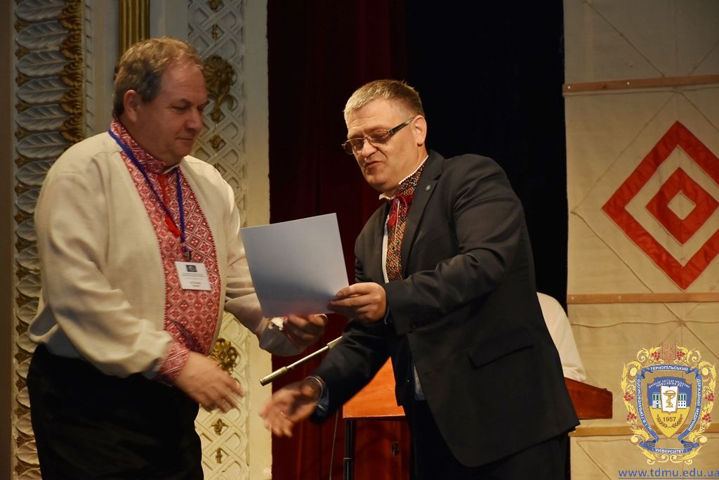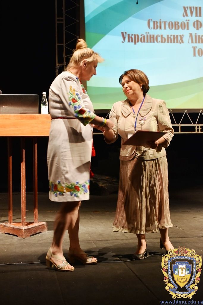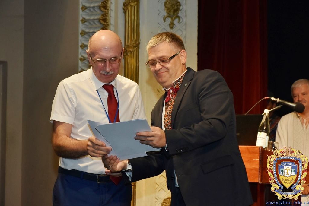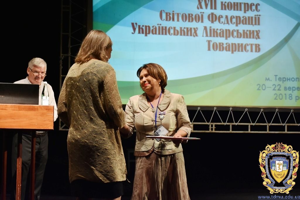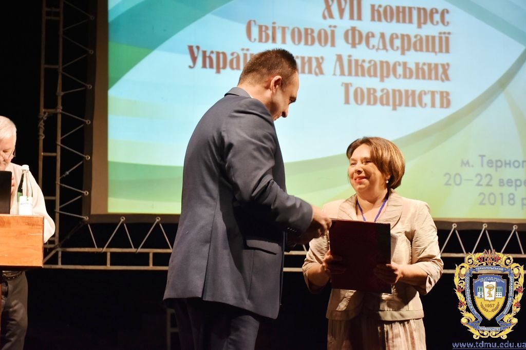 Голова правління Всеукраїнського лікарського товариства Микола Тищук також привітав учасників конгресу і вручив особливу відзнаку організації – «Медаль за працю та звитягу в медицині» – тим, хто найактивніше долучився до організації заходу. Серед нагороджених ректор ТДМУ, професор Михайло Корда, професор Ігор Дзюбановський, Орест Березовський, Катерина Гайда. Ще чимало активістів отримали подяки від ВУЛТ.