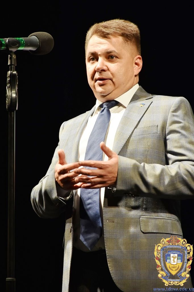 Голова Тернопільської обласної ради Віктор Овчарук під час свого вітального слова наголосив на тому, що лікарі України є не тільки високого класу фахівцями, а й відданими патріотами своєї країни. Вони, ризикуючи своїм життям, надають допомогу військовим, котрі боронять східні кордони нашої держави. Віктор Овчарук також звернув увагу на те, що сьогодні Україна дуже змінюється в напрямку впровадження світових стандартів, особливо у медичній галузі. Він також подякував всім лікарям за самовіддану працю.
