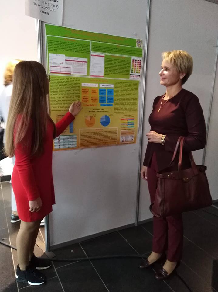 Молодий науковець Уляна Дмитерко представила стендову наукову доповідь «Стан поширеності факторів ризику серцево-судинних подій серед жителів Тернопільської і Київської областей та шляхи їх модифікації», виконану під керівництвом доцента ТДМУ Левицької Лариси Володимирівни.