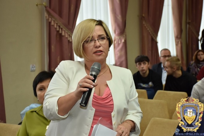 Доцент ТДМУ Тетяна Бакалюк виступила з доповіддю «Застосування об’ємного пневмопресінгу при реабілітації хворих з патологією опорно-рухового апарату».