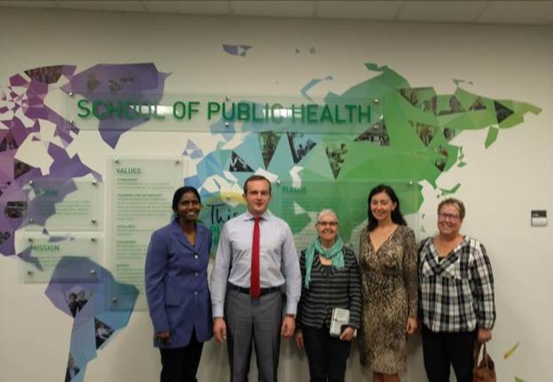 Не менш важливим завданням поїздки було також ознайомлення викладачів ТДМУ з освітніми програмами громадського здоров’я у Школі громадського здоров’я Університету Альберти (м. Едмонтон, Канада). З цією метою було проведено зустріч з деканом Школи громадського здоров’я, професором Шанті Джонсон, та директором програм Школи громадського здоров’я Університету Альберти, доктором філософії Рут Вольф.