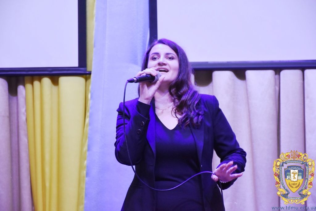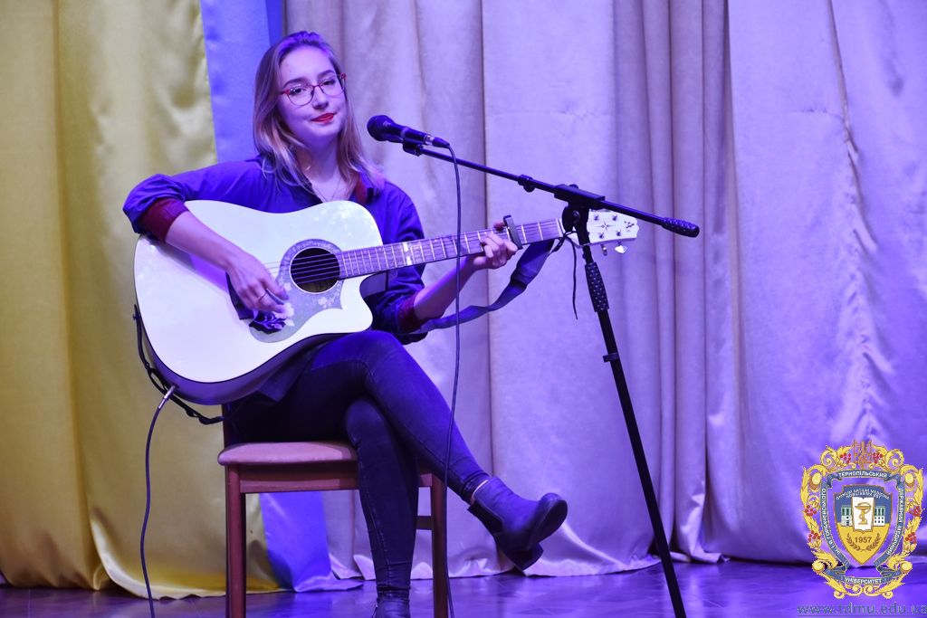 Студентка Христина Врублевська цього вечора дала можливість всім разом нагадати кращі пісні української естради, виконавши попурі з них.