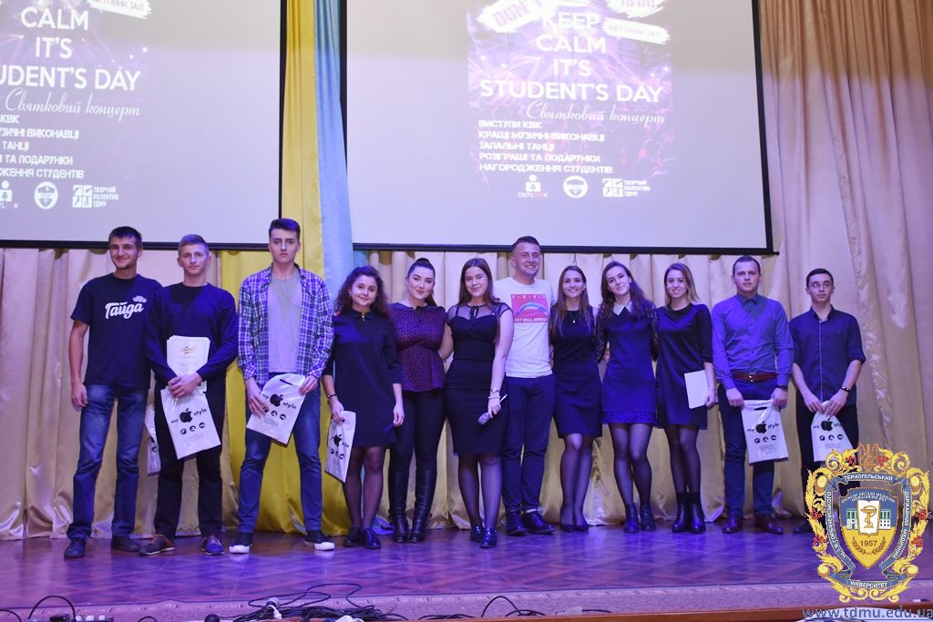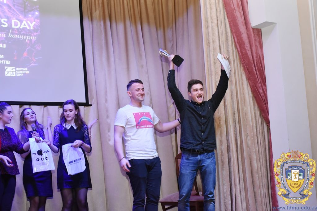 Під час святкового концерту було нагороджено переможців «Студенського квесту», який відбувся 13 листопада 2018 року (детальніше тут: https://www.tdmu.edu.ua/2018/11/15/studentskyj-kvest-u-tdmu-veselo-tsikavo-zhvavo/). Першими стали представники команди «Славчани» (153 бали), друге місце вибороли учасники команди «Розумний вибір» (151 бал), третє місце посіла команда «Муравлі» (146 балів). Нагадаємо, що участь брало 14 команд.