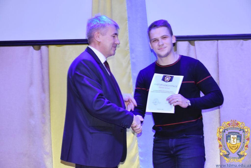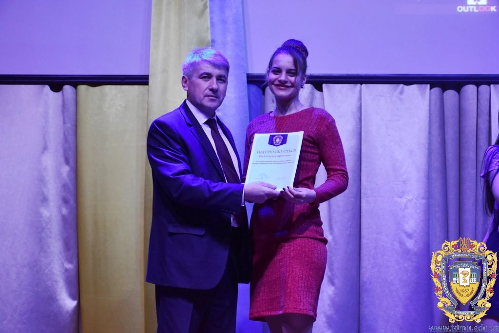 Після відзначення найкращих команд з вітальним словом до всіх присутніх у залі звернувся проректор з науково-педагогічної роботи, професор Аркадій Шульгай. Він також вручив кращим студентам ТДМУ подяки від адміністрації нашого університету. Їх отримали ті, хто упродовж року показав чудові результати в предметних олімпіадах, наукових конференціях, громадській і волонтерській діяльностях, організовував і брав участь у культурно-масових заходах.