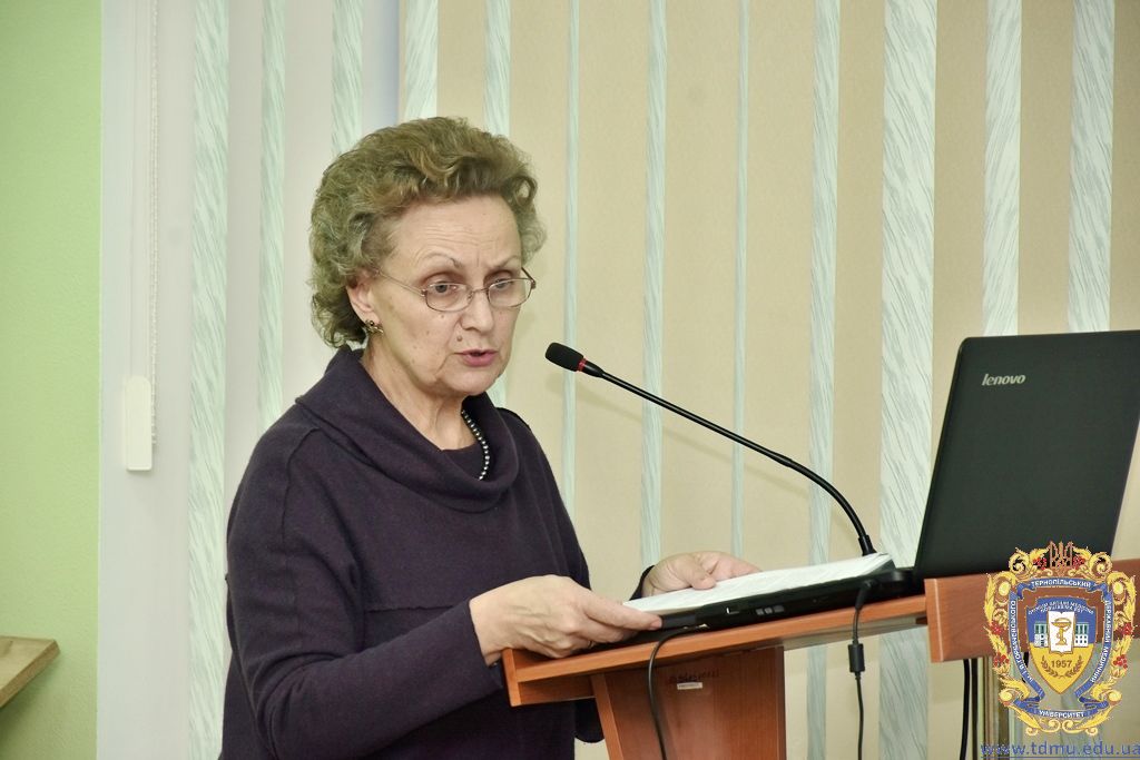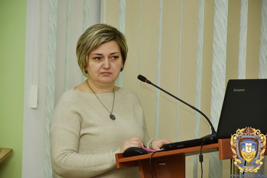 Про матеріально-технічне забезпечення та організацію навчального процесу на кафедрах стоматологічного факультету доповіла професор кафедри фармакології з клінічною фармакологією, директор навчально-наукового інституту фармакології, гігієни та медичної біохімії імені М.Скакуна Катерина Посохова.