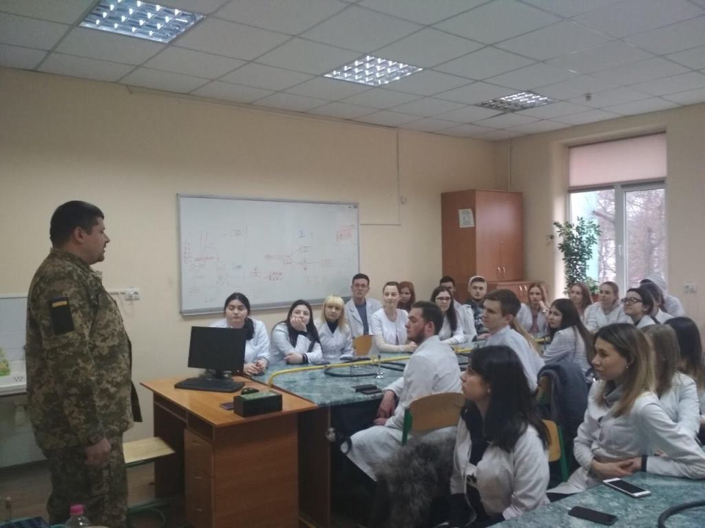 У новітній історії незалежної України місяць лютий ознаменувався кровопролиттям на Майдані, а згодом і трагічними подіями пов’язаними з військовою агресією з боку Росії. Саме для того, щоб згадати ці страшні події та усвідомити справжню ціну, яку платить наша держава за свою незалежність, 26 лютого 2019 року на кафедрі мікробіології, вірусології та імунології був проведений патріотично-виховний захід для студентів кураторських груп з учасником бойових дій на Сході України, викладачем кафедри Винничуком М.О.
