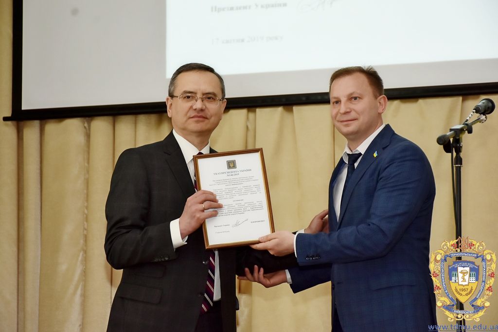 Щиро вітаю вас з присвоєнням Тернопільському державному медичному університету статусу національного! На найвищому державному рівні визнали, що Тернопільський медичний університет є одним з найкращих в Україні. І це заслужене визнання. Адже, Тернопільський медичний університет сьогодні – це еталон якісної освіти, визнаний в Україні та за кордоном. На це вказують міжнародні та національні рейтинги.