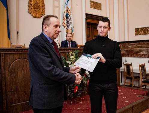 Наукова робота Михайла Волошина «Характер реакції компактної речовини діафіза довгих кісток дослідних щурів на вплив експериментального цукрового діабету», яка виконана на кафедрі патологічної анатомії з секційним курсом та судової медицини ТНМУ під керівництвом д.мед.н., професора Я.Я.Боднара, відзначена грамотою.
