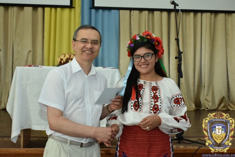 «Сьогодні від щирого серця дякуємо всім викладачам за ті зусилля, які вони доклали для вашої підготовки, за їх знання, якими вони ділилися, допомагали вам адаптуватися в Україні. Володіння українською мовою допоможе вам у подальшому навчанні краще обстежити пацієнта, зібрати анамнез. Бажаю вам успіхів, відмінно навчатися далі і робити все для того, аби стати висококваліфікованими лікарями», – звернувся до випускників проректор з науково-педагогічної та лікувальної роботи, професор Степан Запорожан.