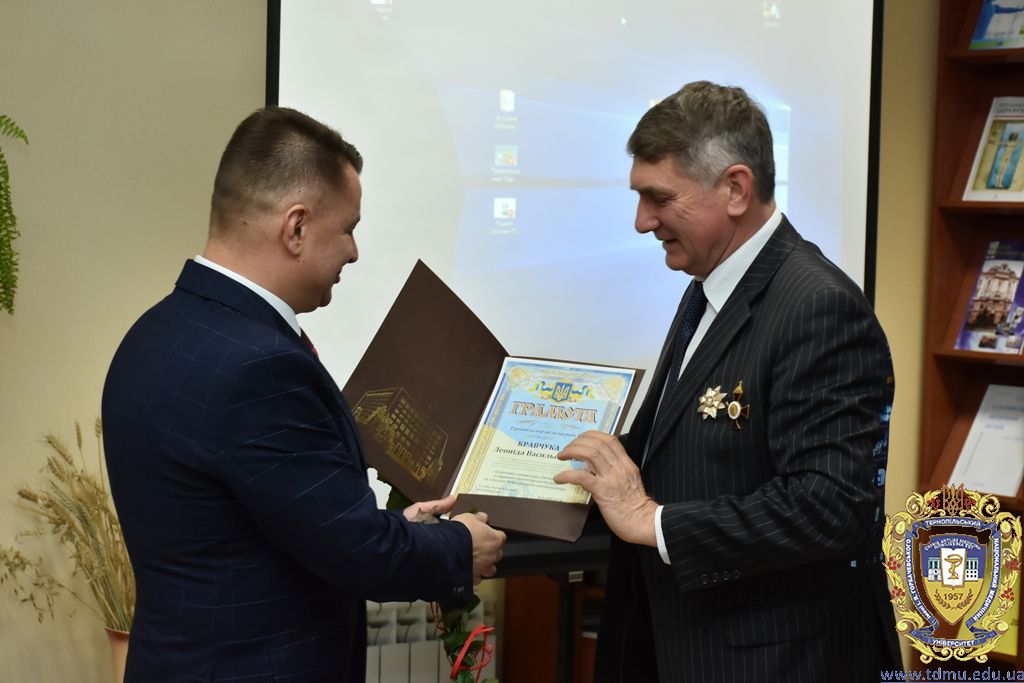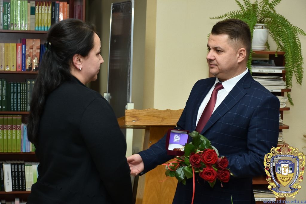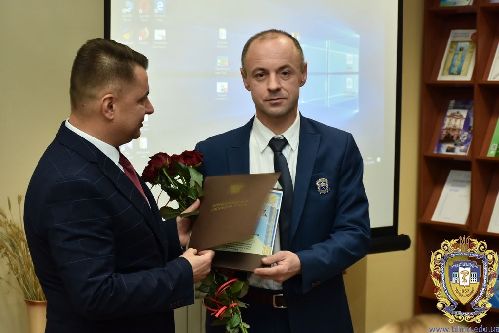 Голова Тернопільської обласної ради Віктор Овчарук нагородив подякою та цінним подарунком Ольгу Стасів, доцентів кафедри дитячих хвороб з дитячою хірургією Тамару Воронцову та Інгу Кубей.