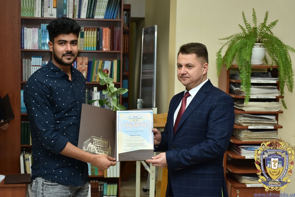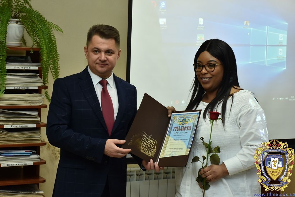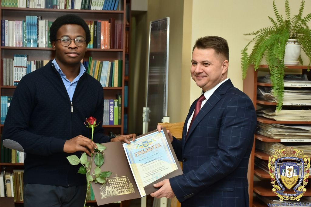Багато радості і задоволення від нагород цього дня одержали іноземні студенти, зокрема Агєман Серебоух Ордехєа Яв (Гана), Аденії Адетоміва Адевале (Нігерія), Джавед Алам (Індія), Джаісвал Сахіл (Індія), Лесняк-Мошук Аркадіуш Доріан (Польща), Насіма Вероніка Ненсі Наташа (Намібія), Тонье-Ндебеле Тандема Номпумелело (Зімбабве), Кхан Мохаммад Шумаєль Атхар (Індія). Зазначимо, що вони багато зусиль і праці докладають до розвитку волонтерської діяльності в університеті і місті загалом.