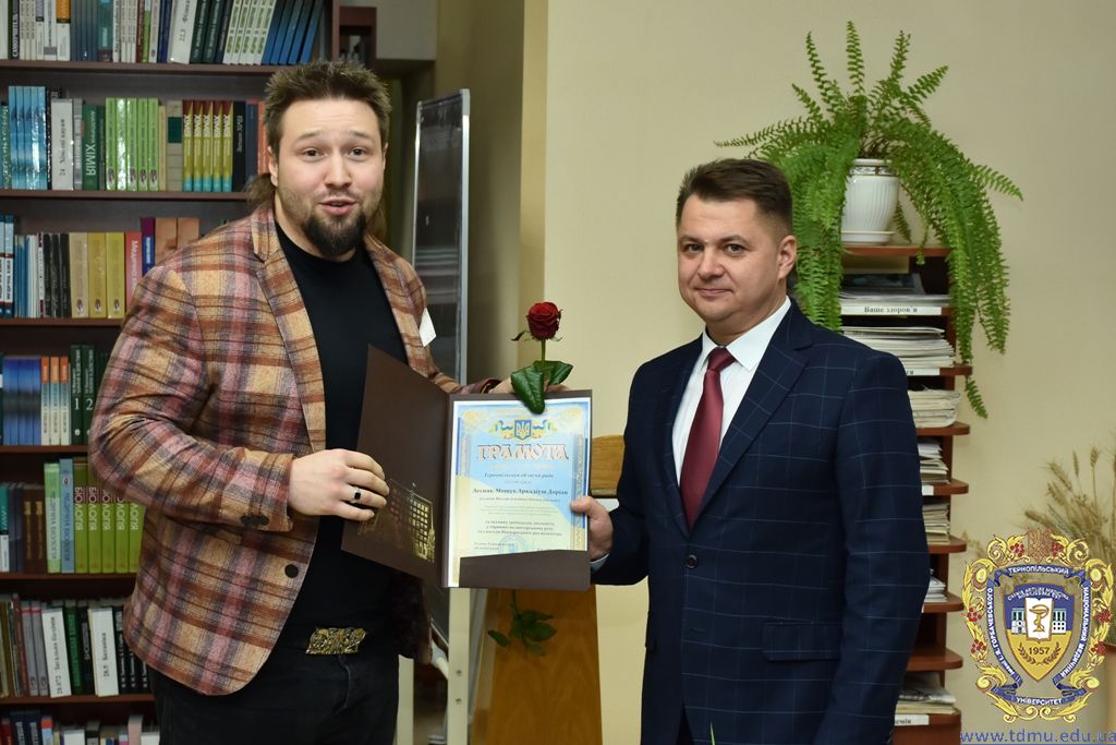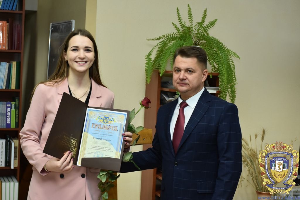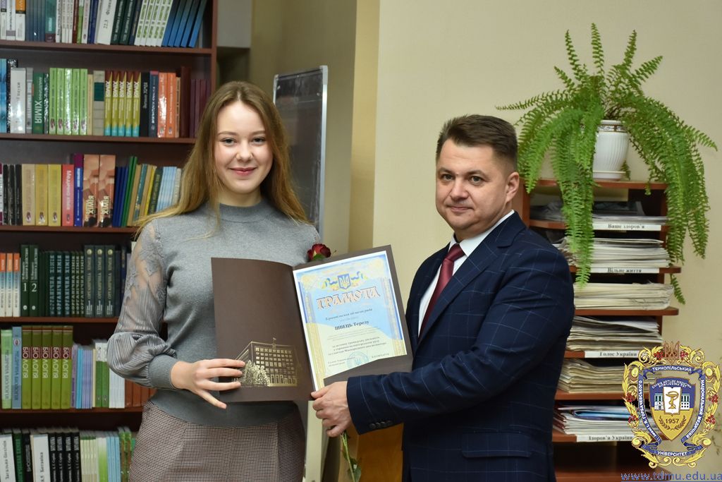 Грамоти від Тернопільської обласної ради з нагоди Міжнародного дня волонтера отримали представниця громадської організації «Матері в молитві» Марія Шестопалка, доценти кафедри педагогіки вищої школи та суспільних дисциплін, організатори благодійного руху «Мізерікордія» Тарас Кадобний і Леонід Кравчук, колишні викладачі ТНМУ Богдан Бойчук і Надія Архіпова.