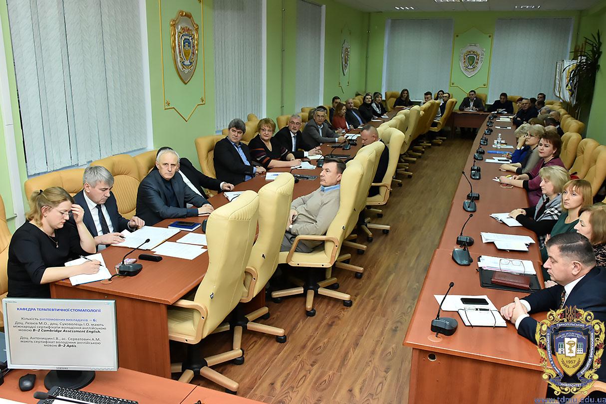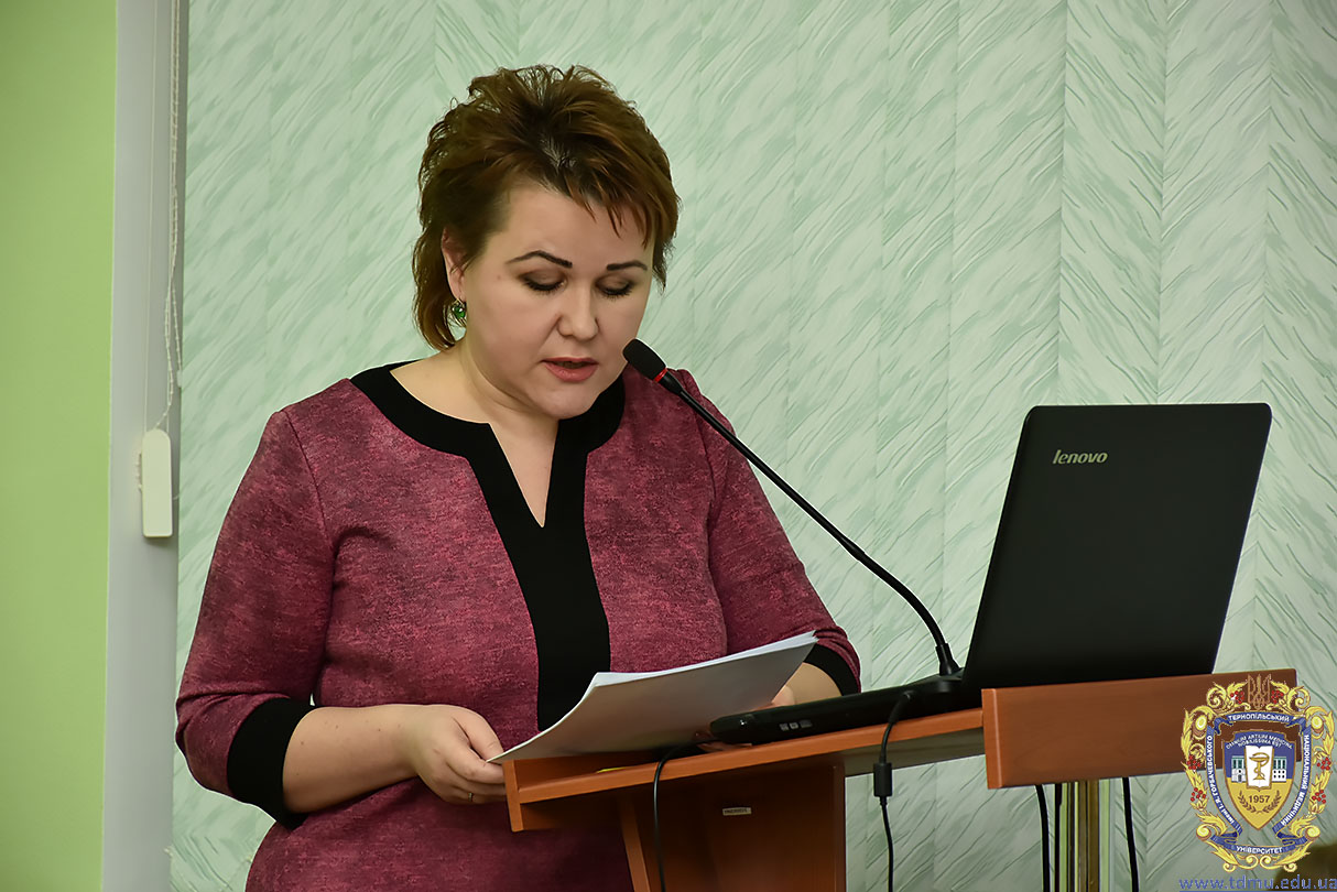Про матеріально-технічне забезпечення та організацію навчального процесу на кафедрах стоматологічного факультету доповіла голова комісії з перевірки, професор Катерина Посохова.