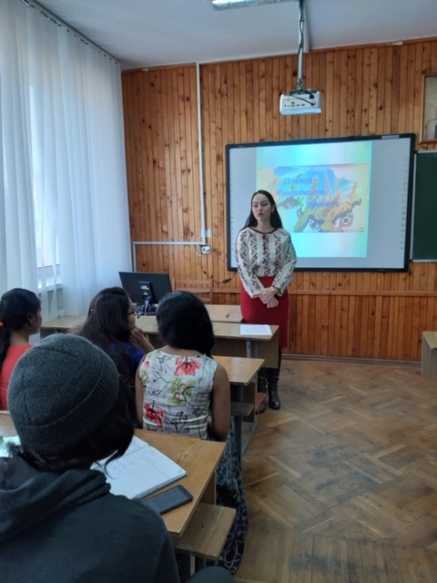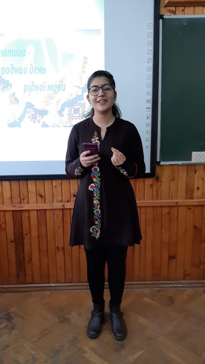 Викладач І.Я.Заліпська розповідає студентам про Міжнародний день рідної мови.