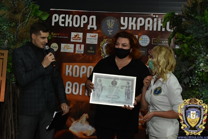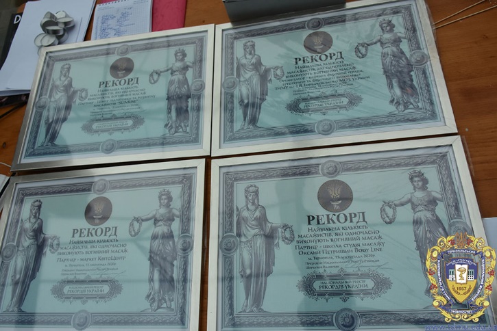 Встановлений рекорд за найбільшою кількістю масажистів, які одночасно виконують «Королівський вогняний масаж» був зареєстрований керівником Національного реєстру рекордів України Ланою Вєтровою. Вона ж і вручила офіційне свідоцтво про встановлення рекорду доктору біологічних наук, професору, декану медичного факультету ТНМУ Лихацькому Петру Григоровичу.