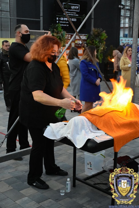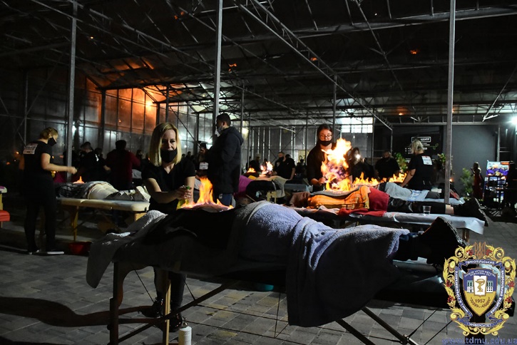 Саме за методикою «Королівського вогняного масажу» відбувся цей захід і таким чином був поставлений рекорд, у якому взяли участь 50 найкращих масажистів Тернополя. Встановлення рекорду проходило в 2 етапи – класичний масаж (25 хв. ) та вогняний масаж (5 хв) серед фахівців, які досконало володіють класичним стилем масажу, а також нетрадиційними видами масажу.