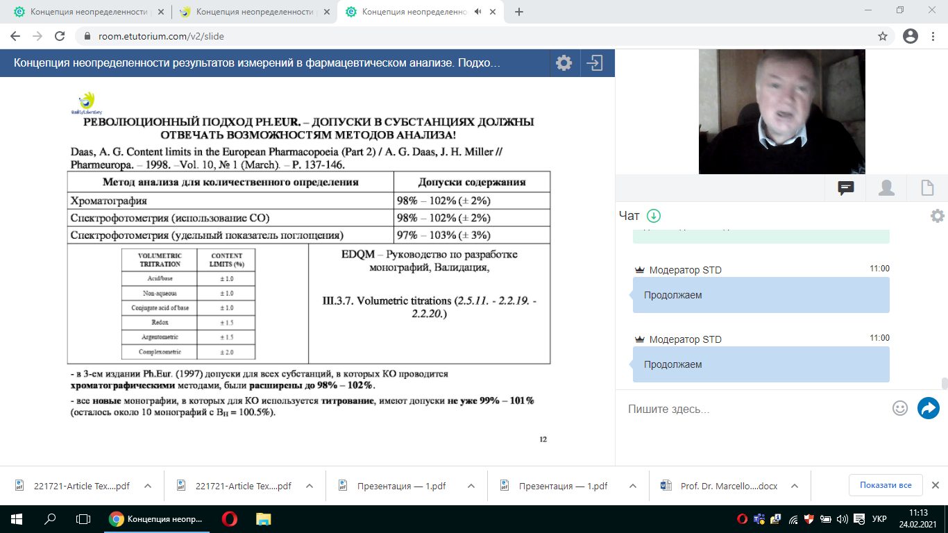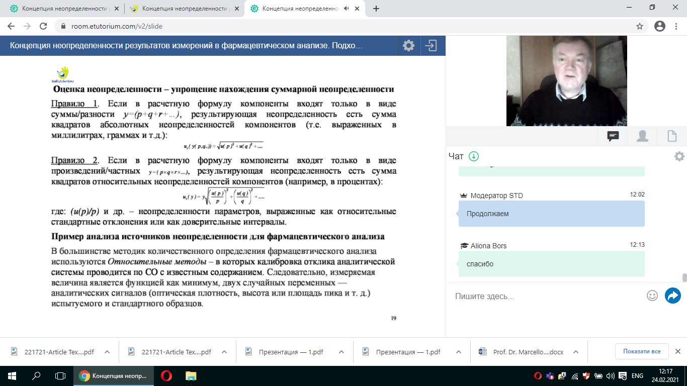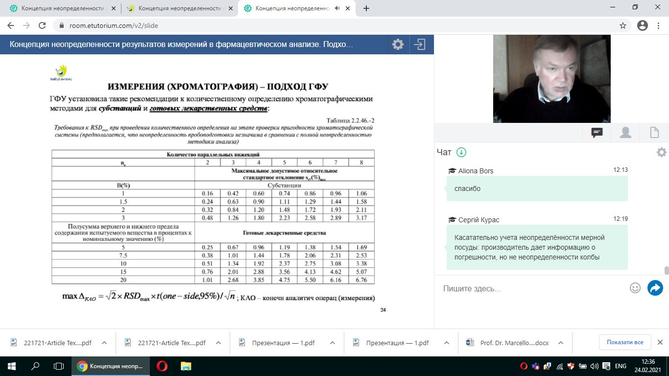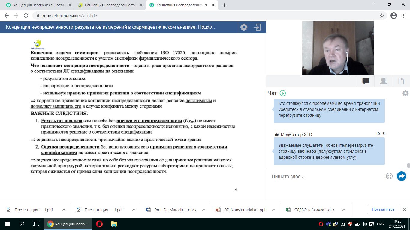 24-25.02.2021 року завідувач кафедри фармацевтичної хімії ТНМУ Лілія Логойда взяла участь у семінарі «Концепція невизначеності результатів вимірювань у фармацевтичному аналізі. Підхід ДФУ». Лектором заходу був Дмитро Анатолійович Леонтьев – д. фарм. н., начальник відділу валідації та стандартних зразків, заступник директора по науковій роботі Державного підприємства «Український науковий фармакопейний центр якості лікарських засобів» МОЗ України, профессор кафедри фармацевтичної хімії Національного фармацевтичного університету. У семінарі взяли участь 88 учасників (співробітники лабораторій контролю якості лікарських засобів, фахівці із забезпечення якості в лабораторіях хімічного аналізу, фахівці в галузі фармацевтичної розробки). Були також і фахівці з-за кордону.