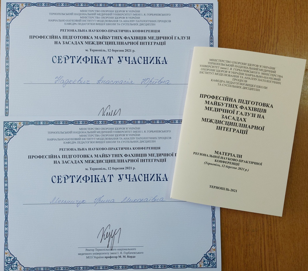 12 березня 2021 року в Тернопільському національному медичному університеті імені І.Горбачевського відбулася регіональна науково-практична конференція «Професійна підготовка майбутніх фахівців медичної галузі на засадах міждисциплінарної інтеграції». Захід організовано кафедрою педагогіки вищої школи та суспільних дисциплін ТНМУ. Зважаючи на епідемічну ситуацію в Україні та світі, зумовлену пандемією коронавірусу, конференція проходила в онлайн-режимі через сервіс ZOOM.