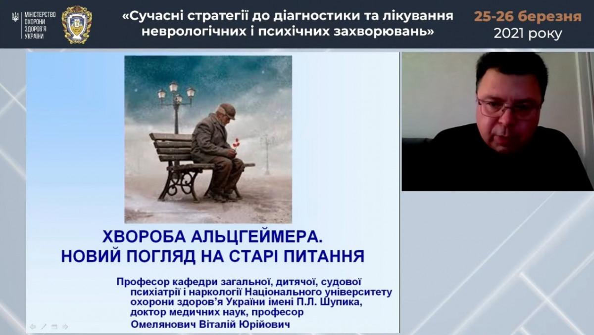 Під час наукового зібрання ознайомив зі своєю доповіддю «Хвороба Альцгеймера. Новий погляд на старі питання» доктор медичних наук, професор кафедри загальної, дитячої, судової психіатрії і наркології Національного університету охорони здоров’я України імені П.Шупика Віталій Омелянович.