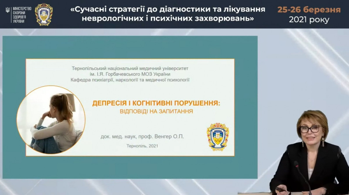 Інтерес викликала доповідь «Диференційований підхід до лікування депресивних розладів» завідувача кафедри психіатрії, наркології та медичної психології ТНМУ імені І.Горбачевського, доктора медичних наук, професора Олени Венгер.