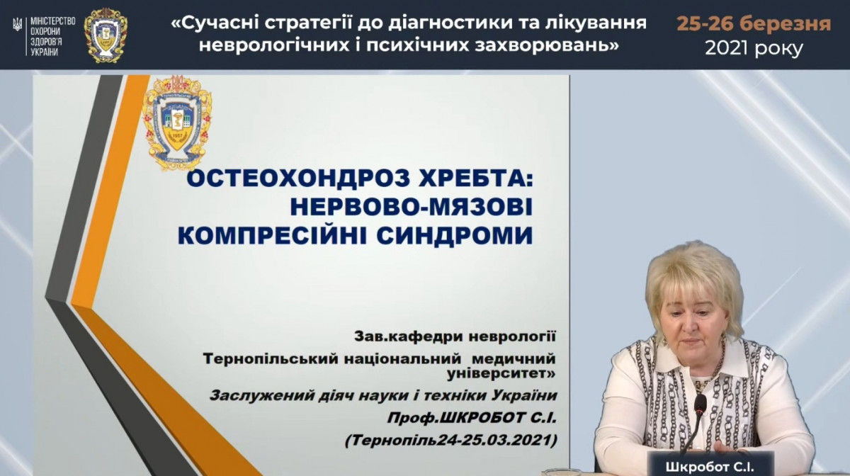 Зацікавила слухачів своїм виступом «Оптиконейромієліт Девіка: питання та відповіді» завідувач кафедри неврології Тернопільського національного медичного університету імені І.Горбачевського, заслужений діяч науки та техніки України, доктор медичних наук, професор Світлана Шкробот.