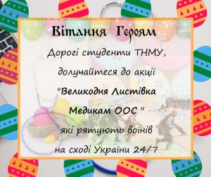 З наближенням Воскресіння Христового студенти Тернопільського національного медичного університету імені І.Горбачевського розпочинають доброчинну акцію «Великодня листівка медикам ООС».