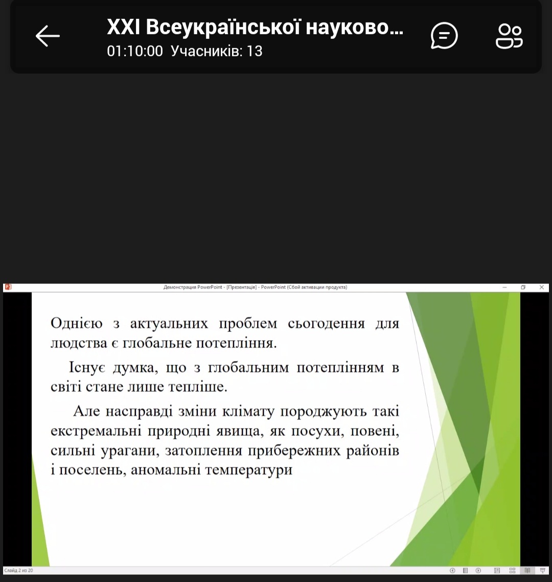 Формат відео-конференції надав змогу не лише вербально представити свої наукові здобутки, але й водночас став майданчиком для наукової дискусії, спільного перегляду й плідного обговорення відео-фрагментів та наданих презентацій.