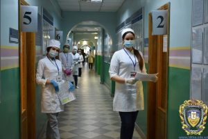 Розпочинався іспит з привітання голови екзаменаційної комісії, додаткового роз’яснення регламенту, правил проведення ОСКІ, формату іспиту, порядку проходження станцій, присвоєння індивідуального ідентифікаційного номера студенту, видачі та реєстрації маршрутного листа.