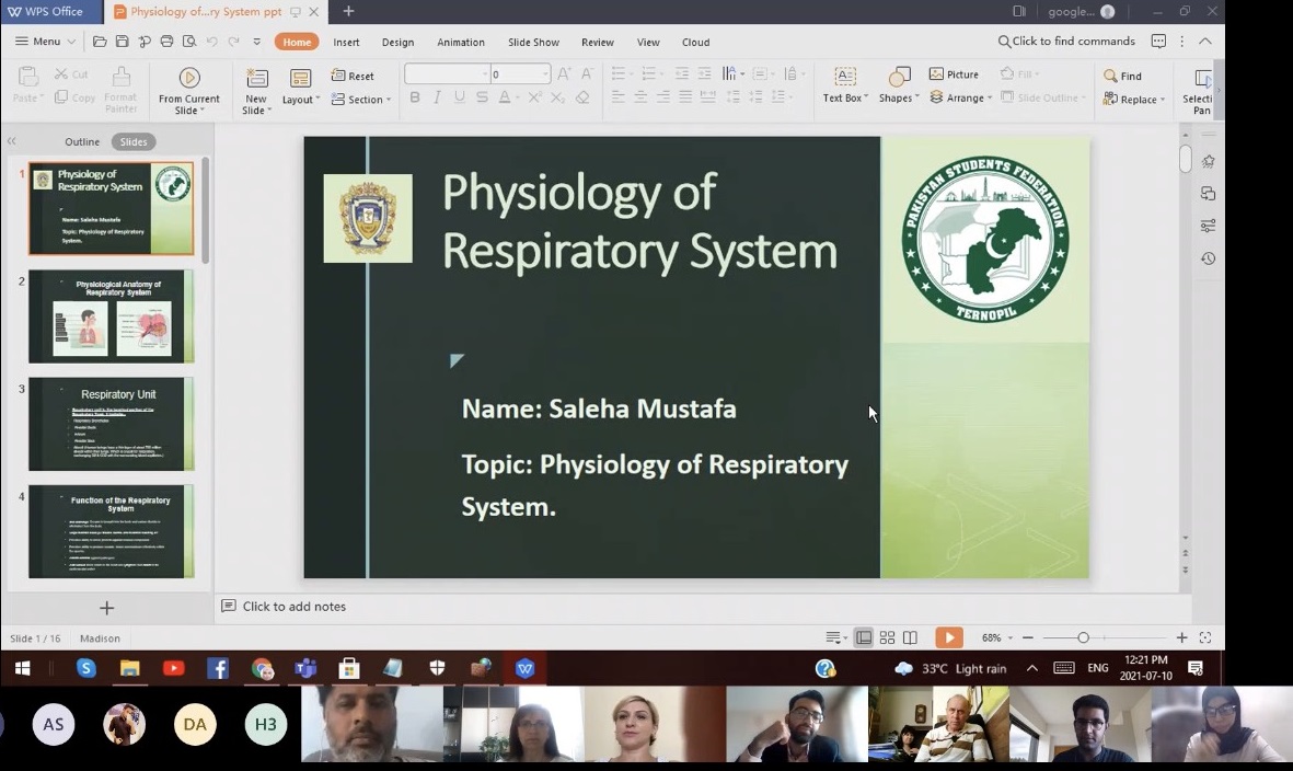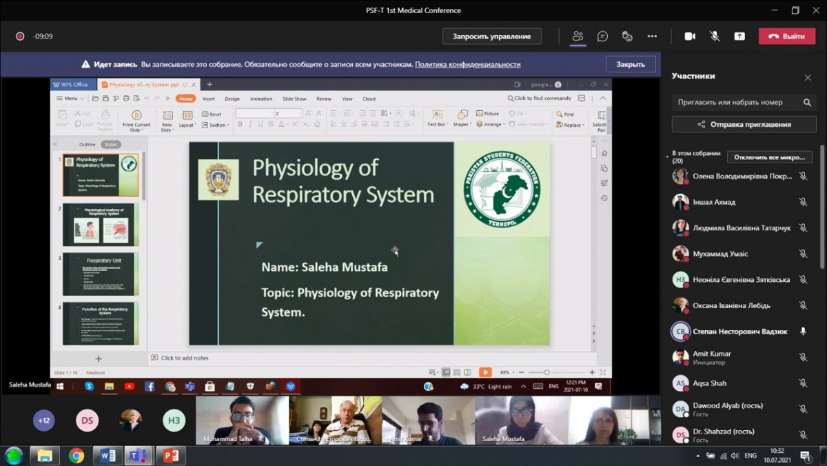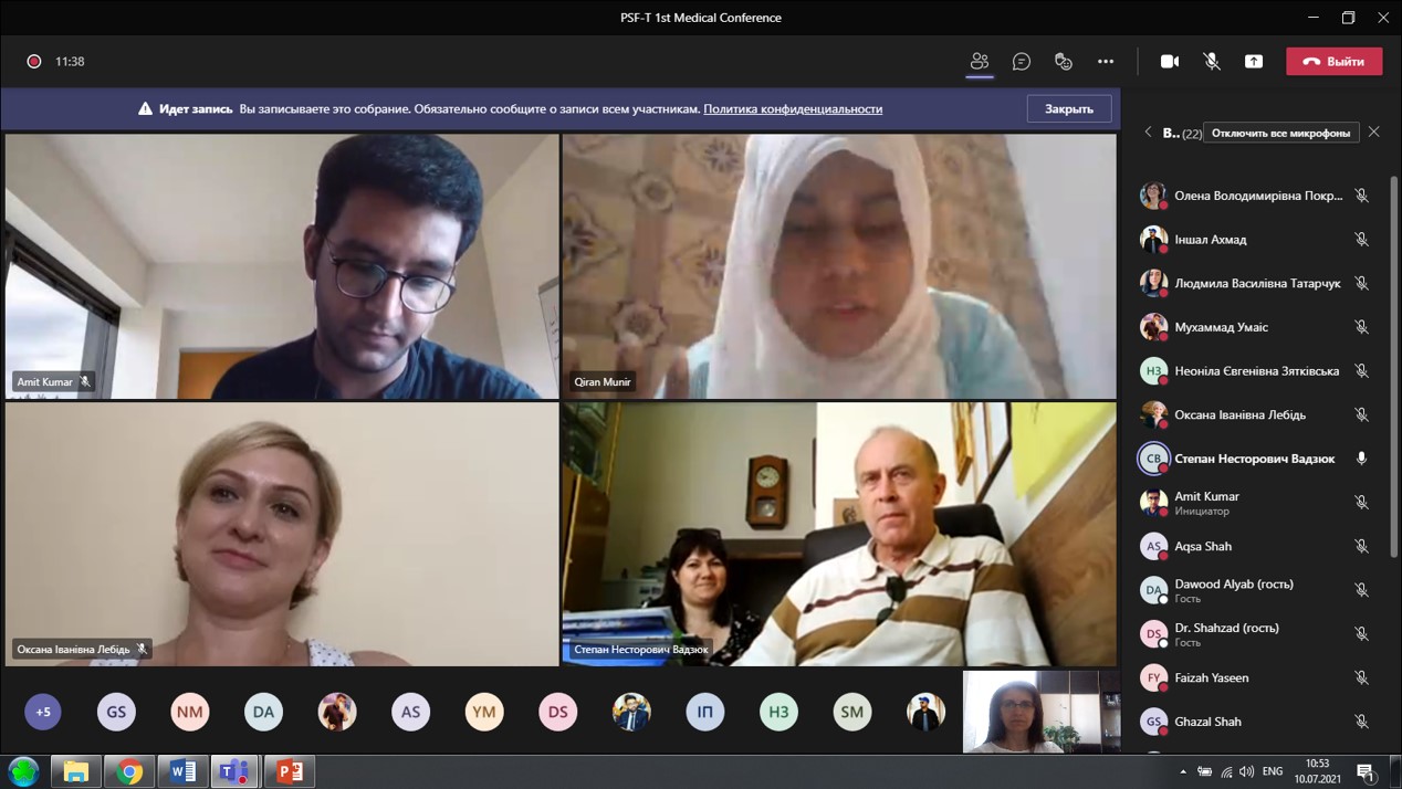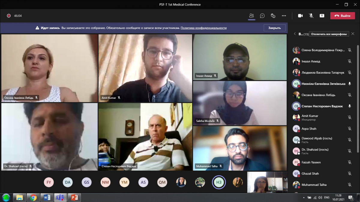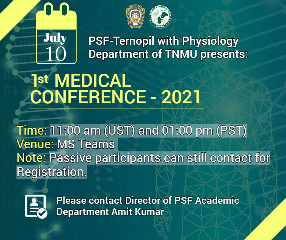 Члени пакистанської спільноти Тернопільського національного медичного університету організували першу медичну онлайн конференцію з нормальної фізіології. Вона була проведена на платформі MSTeams, якою студенти користувалися протягом усього навчального року. Відповідальним за організацію наукового форуму був Кумар Аміт, який виконує обов’язки керівника академічного напрямку федерації, та президент цієї федерації Радж Кумар. Загалом у конференції взяло участь 23 учасники.