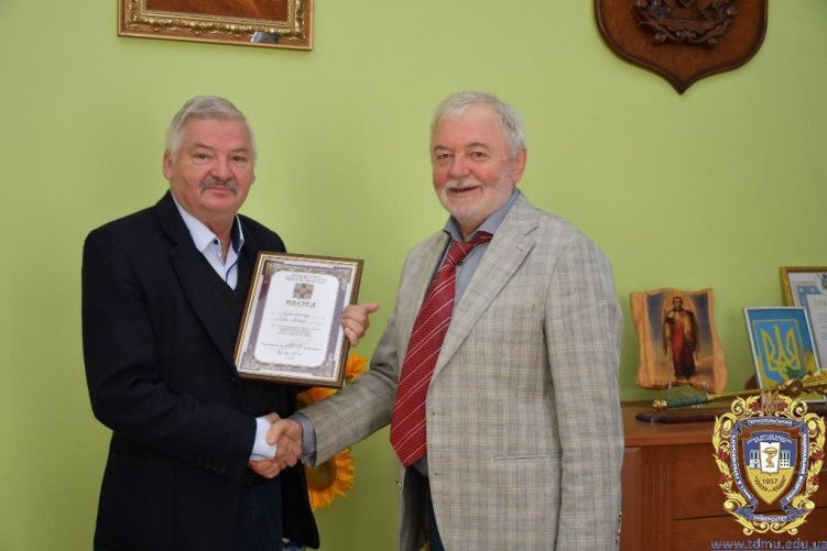 Подяки отримали ректор ТНМУ, професор Михайло Корда, завідувач кафедри хірургії факультету післядипломної освіти, професор Ігор Дзюбановський, завідувач кафедри фармацевтичної хімії, професор Лілія Логойда.