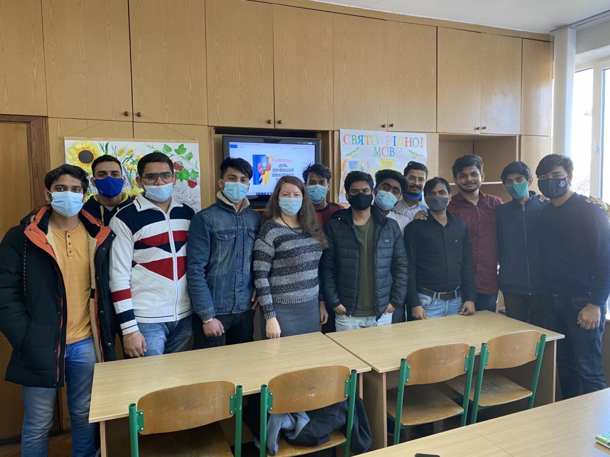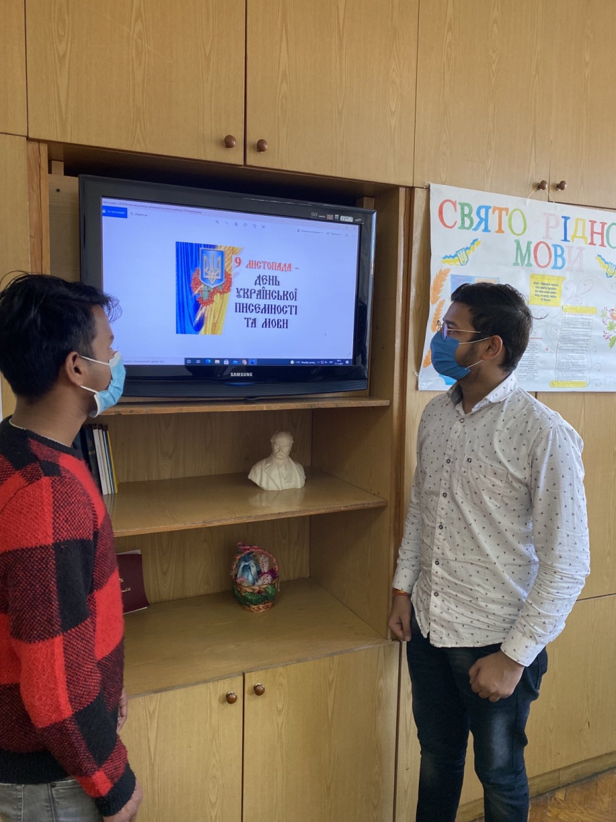 Доцент Оксана Новіцька разом зі студентами групи ІМ-145 подивилися та обговорили фільм про День української писемності та мови. Крім того, іноземні студенти декламували вірші про українську мову. Прекрасно звучала українська поезія з уст іноземних студентів – Коттур Валіяпідіяккал Джессіль і Борах Капіл.