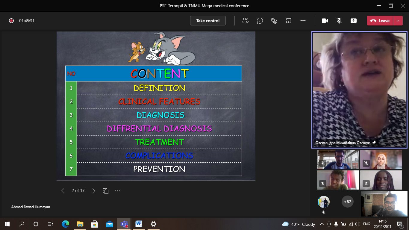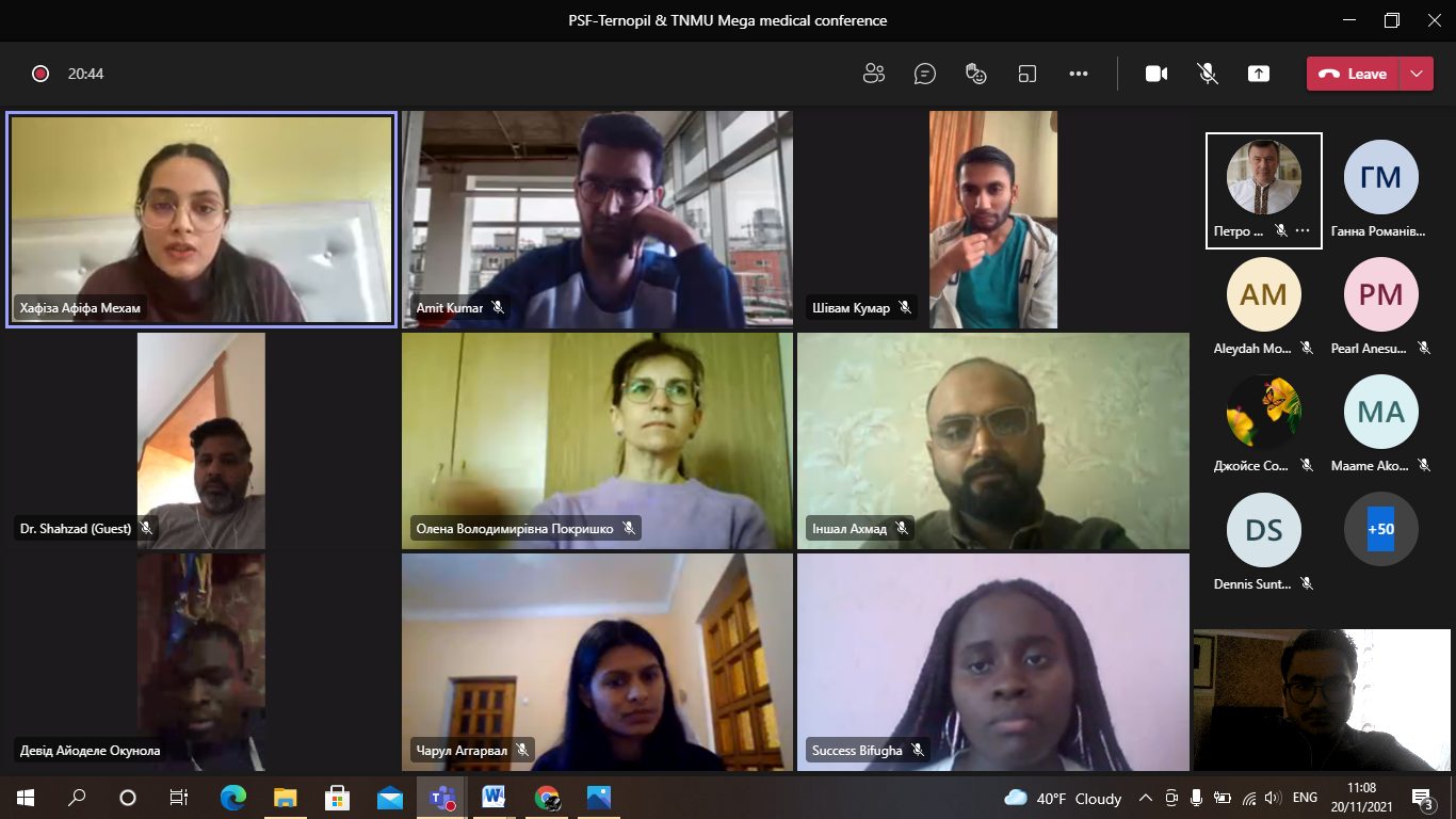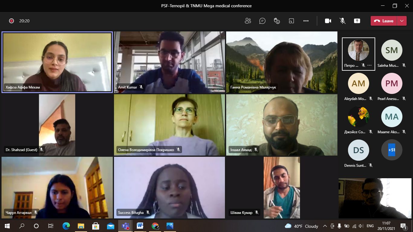 Федерація студентів Пакистану-Тернопіль за підтримки Тернопільського національного медичного університету організувала «Mega Medical Conference», яка відбулася 20 листопада 2021 року в онлайн-форматі у платформі Microsoft Teams під керівництвом доцента Олени Покришко.