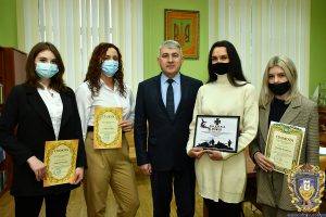 В.о. ректора ТНМУ професор Аркадій Гаврилович Шульгай нагородив студенток 1 курсу стоматологічного факультету Добрянську Яну, Бондар Катерину та Сворак Софію грамотою «За успішне навчання, активну громадську позицію, участь у національно-патріотичних заходах університету».
