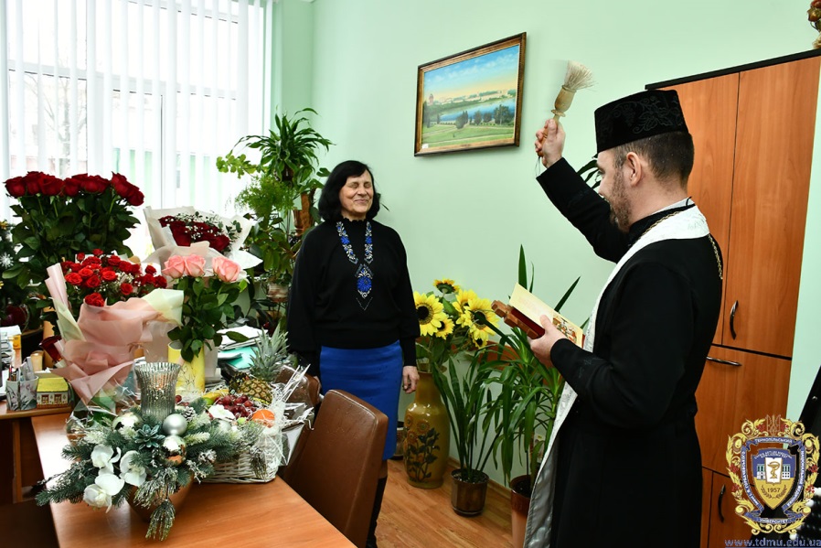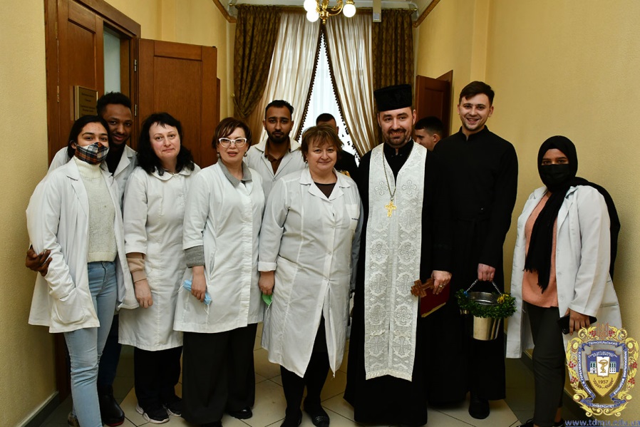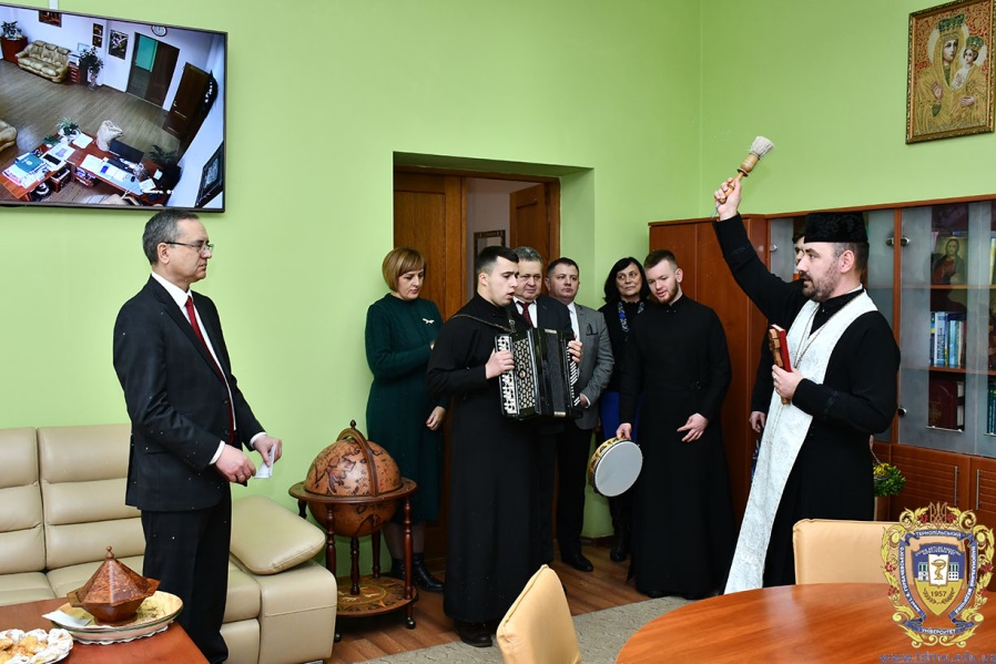 Отець Ігор Драпак, який є священиком УГКЦ і капеланом Тернопільського національного медичного університету імені І.Горбачевського, від імені духовенства Української греко-католицької церкви 25 січня 2022 року привітав колектив ТНМУ з минулими різдвяними святами і здійснив обряд освячення Йорданською водою приміщень освітнього закладу.