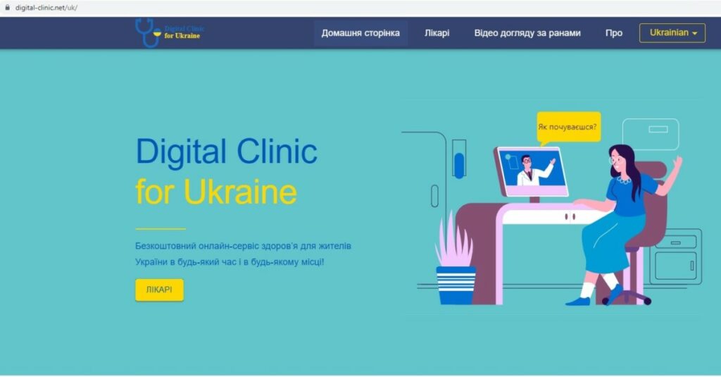 «Digital Clinic for Ukraine» – безкоштовний онлайн-сервіс здоров’я для жителів України в будь-який час і в будь-якому місці (https://digital-clinic.net/uk/) забезпечує легкий доступ до онлайн-сервісів охорони здоров’я за допомогою будь-якого пристрою. Багато людей сьогодні не мають доступу до медичних послуг, тому експерти з цифрового здоров’я з відомої європейської платформи охорони здоров’я Klinika Digjitale та медичні працівники Тернопільського національного медичного університету імені І.Горбачевського об’єдналися, щоб розробити онлайн-платформу для забезпечення швидкого доступу до медичних послуг для українців, де б вони не були.