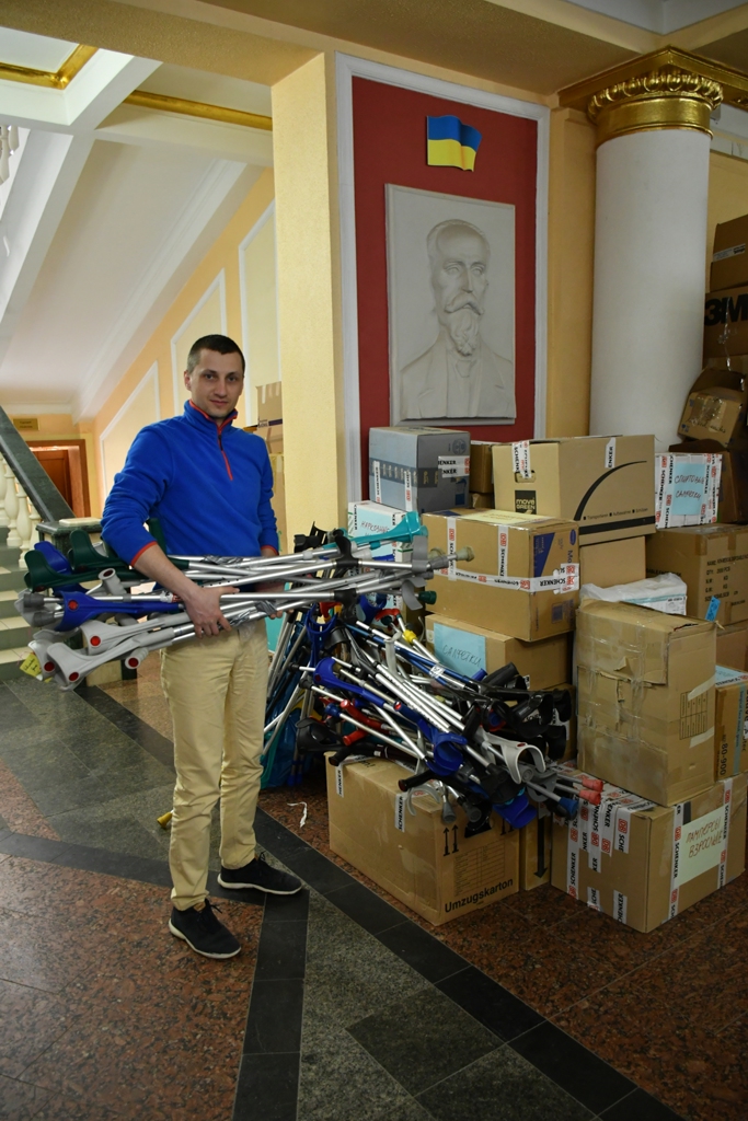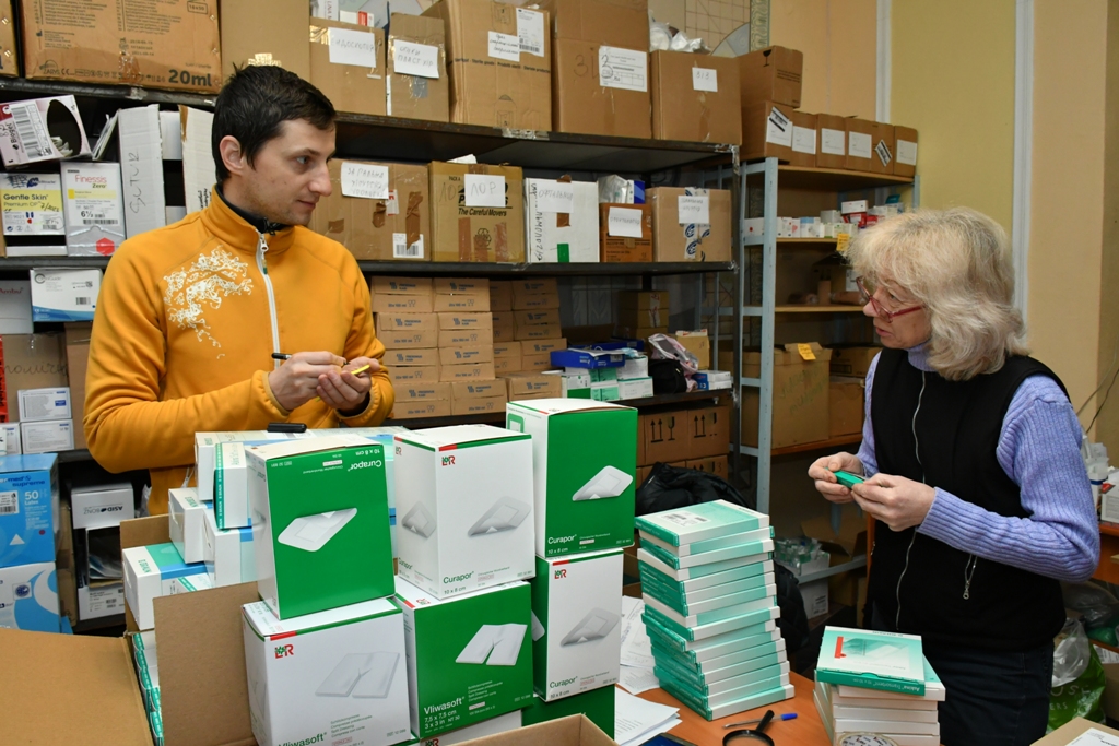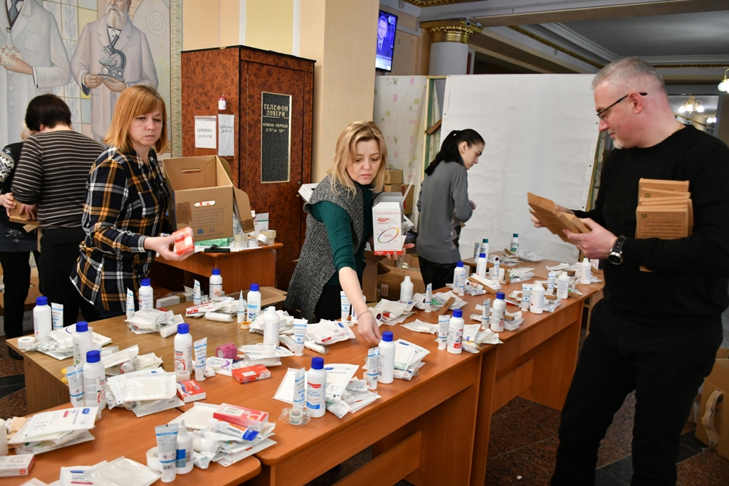 «Ішов другий тиждень війни. Я зайшла по справах до проректора з наукової роботи Івана Кліща. В цей же час зайшов ректор Михайло Корда і сказав, що до нас їдуть великі вантажі з ліками та засобами медичного призначення, тому потрібно грамотно організувати прийом і видачу цього, реєстрації отриманого, розуміння того, який вантаж отримуємо і де його вміст знадобиться у військових госпіталях та лікарнях. Тоді дуже критичним було питання забезпечення якісними турнікетами, індивідуальними аптечками. Михайло Михайлович запропонував мені взятися за цю справу. Я сприйняла це позитивно, бо постійно слухати новини і нічого не робити було важко психологічно. Це забирало сили і надію на те, що все буде добре. І я вхопилася за ідею як за можливість бути корисною. З того часу ми почали формувати основу нашої медично-фармацевтичної команди. Перші вантажі показали нам, що треба об’єднувати людей, які готові бути постійними членами команди. На початку долучилося багато викладачів з різних факультетів, кафедр. Вантажі були різні, здебільшого несортовані. І це було виправдано, бо люди в різних країнах розуміли, що в Україні критично необхідно все, зокрема ліки, засоби медичного призначення, гігієнічні вироби. У той час бої тривали Києва і в Київській області. Ніхто не знав, як будуть розвиватися воєнні події, тому допомагали всім, чим могли.