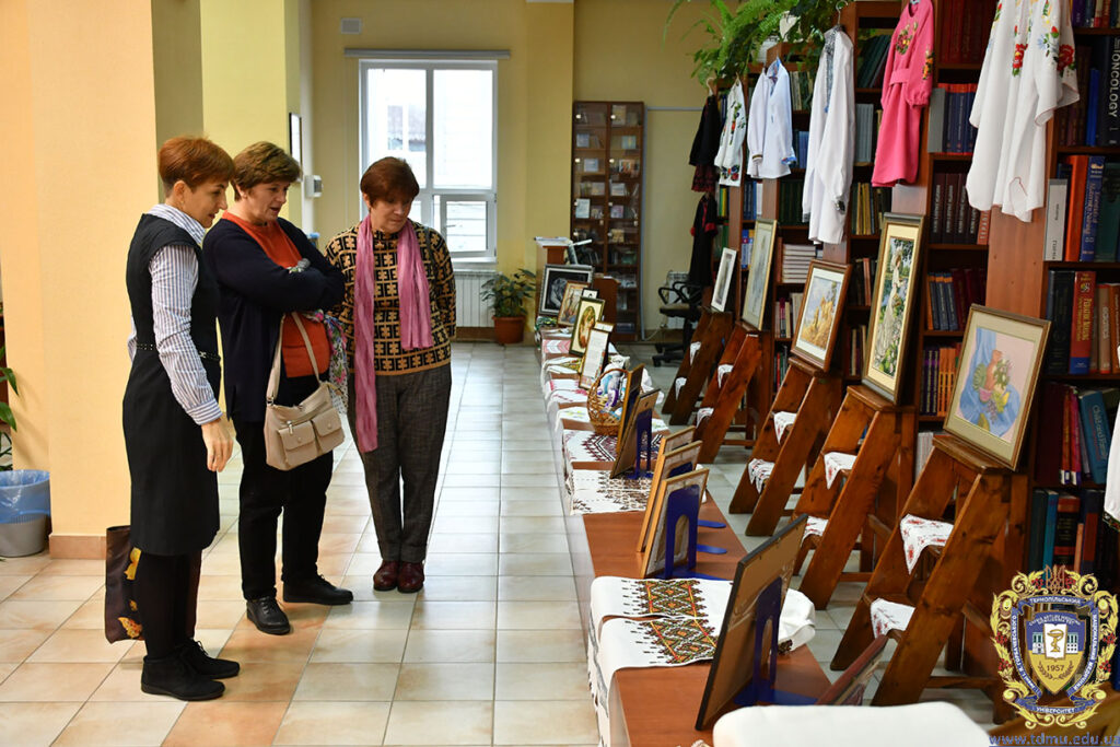 Сучасні і традиційні вишиванки, вишиті картини, рушники, серветки і навіть ялинкові прикраси…Вдивляючись у цю рукотворну красу, створену руками працівниць бібліотеки ТНМУ, дивуєшся, де береться стільки енергії та терпіння, адже ця робота потребує багато часу, копіткої праці й неабиякого терпіння.