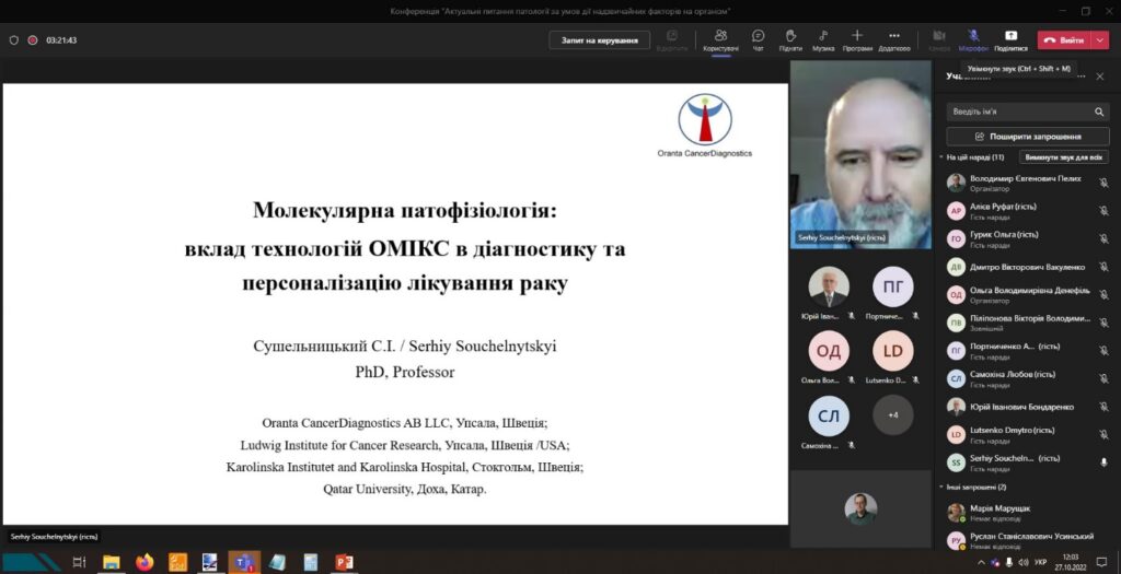 З цікавою доповідю «Молекулярна патофізіологія: вклад технологій oмiкс у діагностику та персоналізацію лікування раку» виступив наш колега з Швеції професор Сушельницький Сергій Іларійович