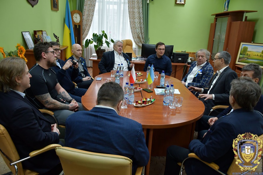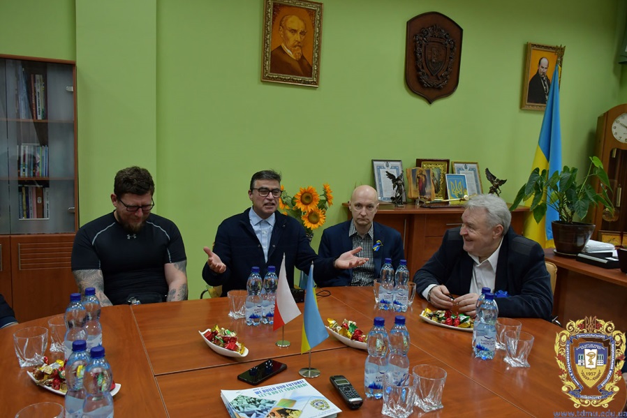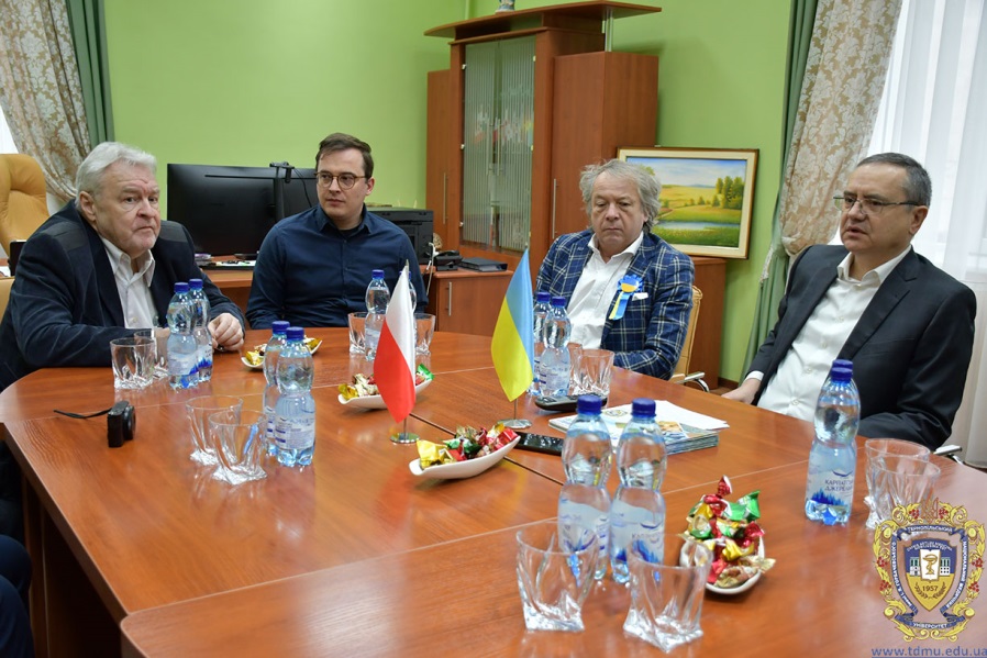 З робочим візитом у Тернопільському національному медичному університеті імені І.Горбачевського 5-8 грудня 2022 року перебувала делегація з Республіки Польща. До її складу увійшли представники польських медичних закладів, зокрема директор Центрального клінічного шпиталю Міністерства внутрішніх справ і адміністрації у Варшаві Вальдемар Вєжба (Waldemar Wierzba), президент Польського товариства соціальної медицини та громадського здоров’я Альфред Овоц (Alfred Owoc), керівник відділу обслуговування пацієнтів і медичних секретаріатів Центрального клінічного шпиталю Міністерства внутрішніх справ і адміністрації у Варшаві Анджей Слівчиньський (Dr hab. n. o zdr. Andrzej Śliwczyński), керівник клініки нейрохірургії Центрального клінічного шпиталю Міністерства внутрішніх справ і адміністрації у Варшаві Артур Зачинський (Artur Zaczyński), керівник кардіологічної клініки Пьотр Сувальський (Piotr Suwalski), керівник кафедри і ортопедичного відділення лікарні імені Дегі Медичного університету в Познані Яцек Качмарчик (Jacek Kaczmarczyk), заступник керівника відділення радіологічної діагностики Центрального клінічного шпиталю Міністерства внутрішніх справ і адміністрації у Варшаві Бартолемей Мрук (Bartłomiej Mruk), виконувач обов’язків керівника секції диджіталізації документообігу Якуб Овоц (Jakub Owoc), заступник керівника групи гуманітарної та медичної допомоги за призначенням прем’єр-міністра Польщі Славомір Буткєвич (Sławomir Butkiewicz), видавець і редактор журналу «Świat Lekarza» Павел Крусь (MGR Paweł Kruś).