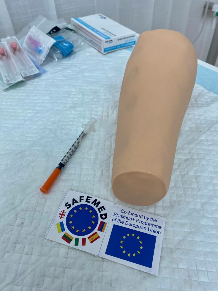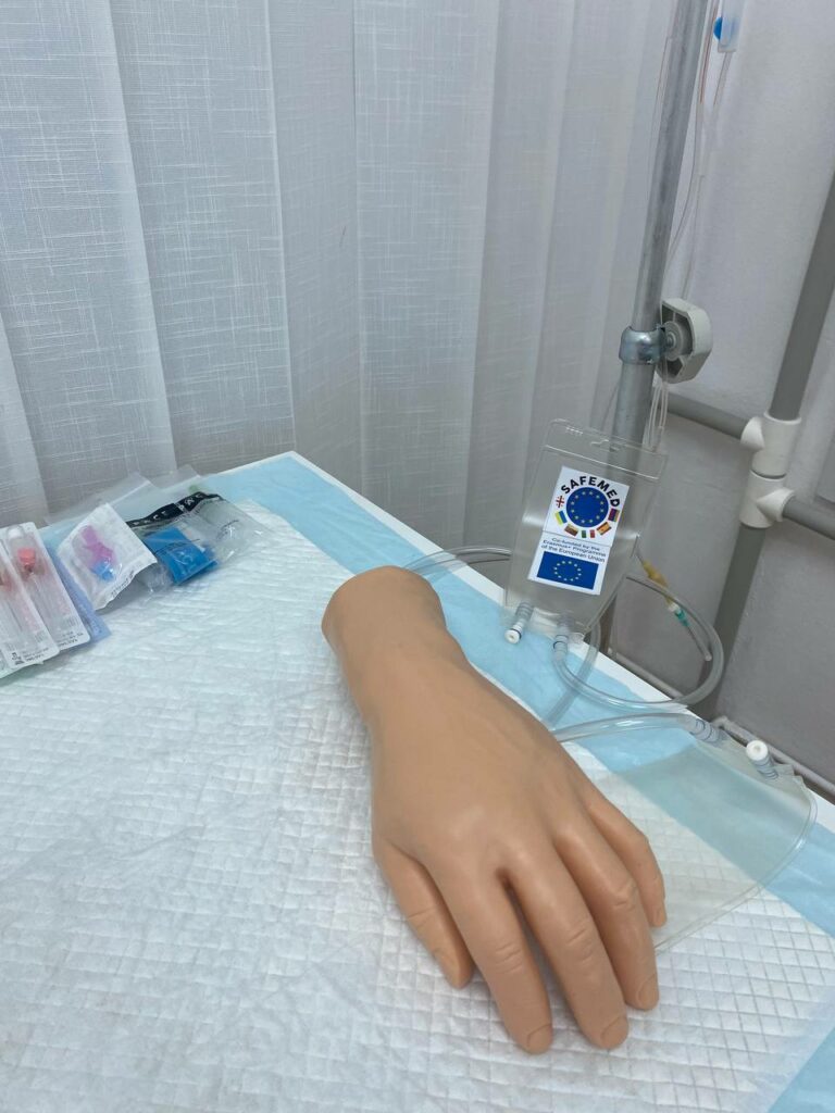 За допомогою моделі кисті для внутрішньовенних ін‘єкцій студенти 2-4 курсу опановують навичку довенного доступу на кисті.