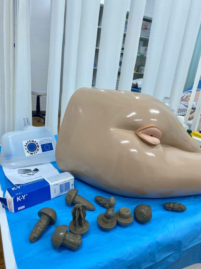 Тренажер для обстеження прямої кишки, оцінки калу та практики клізмових процедур дає можливість студентам 3-го курсу опанувати навичку клізмових процедур. Студенти 4-5 курсу опановують навичку проктологічного обстеження, де за допомогою тренажера можна змоделювати різні патології. Також студенти мають змогу оцінити кал.