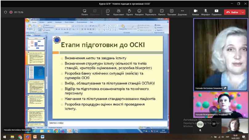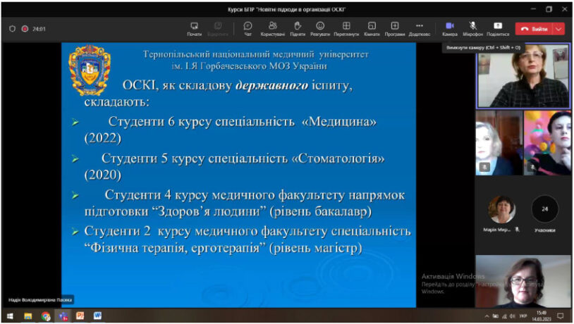 На першому занятті Надія Пасяка ознайомила слухачів з досвідом та досягненнями ТНМУ у проведенні ОСКІ та шляхами його удосконалення.